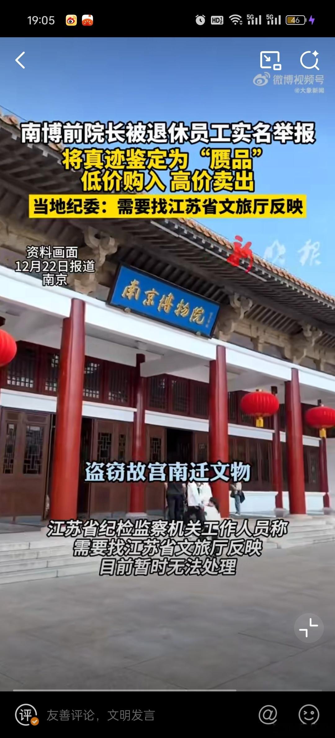 国家文物局介入调查南京博物院事件关于南京博物院的最新消息。希望能够深入调查,调查一个结果出来。