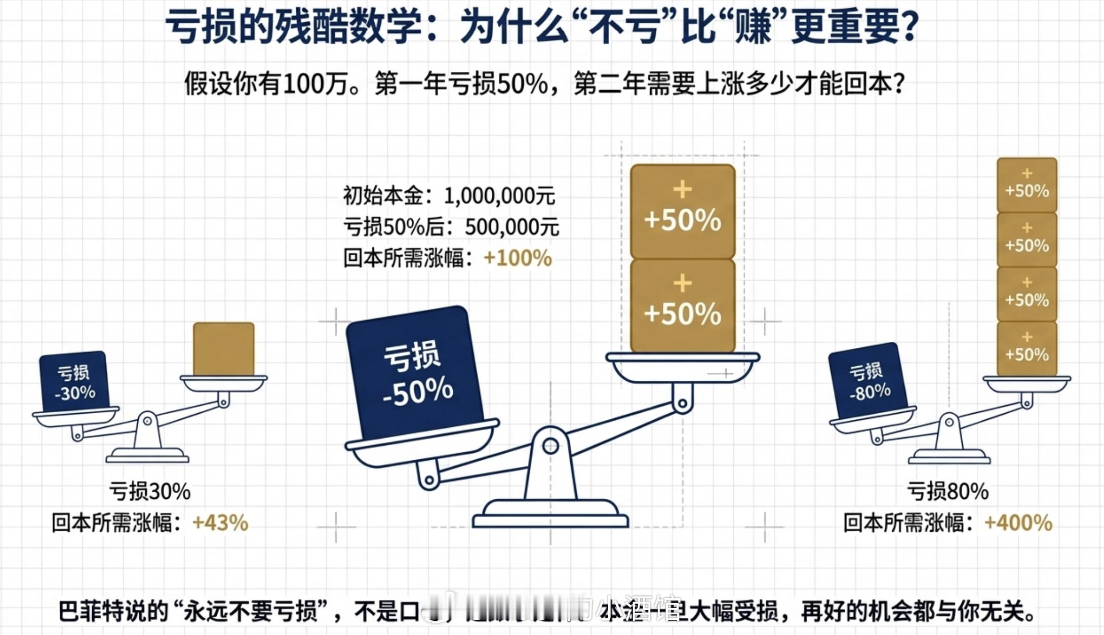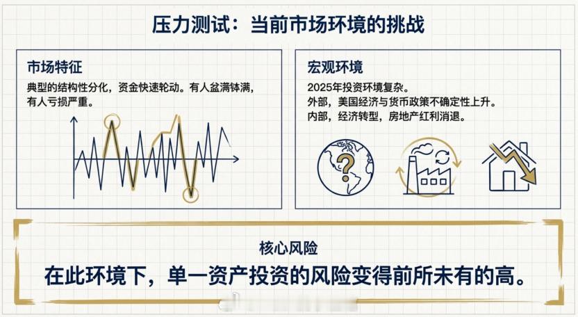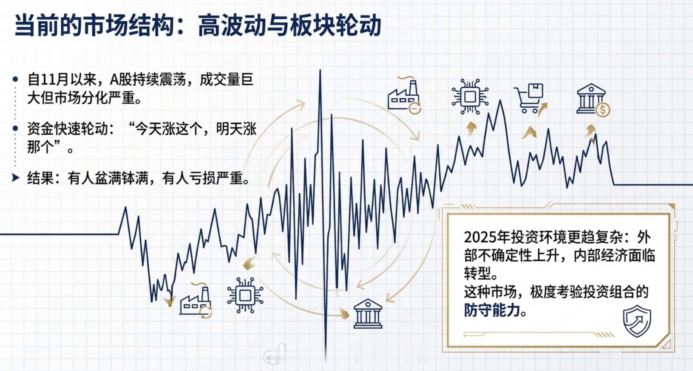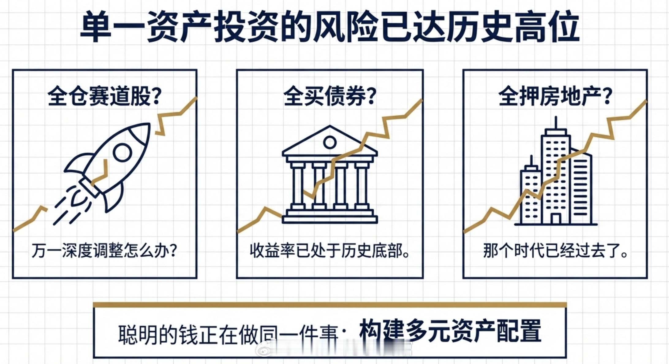 说个赚钱的机会白银lof限额飙升到500,我们会继续申购白银,目前白银lof的溢价率是34%,也就是说500赚个100多还是有可能的(不绝对,要看你卖出时的溢价率)。然后我周五到账的白银lof已经直接卖出了,100赚40,还可以,至少今天的午饭给我解决了。想以非套利方式买卖白银的我不拦着,我只提醒一下:高位有风险,小心吃跌停。话说回来,白银限购的放开也意味着溢价率会快速消失,想要套利的就要抓紧了。流程和上周的一样,不懂怎么套利的看这篇文章:「基金套利,看这一篇就够了!手把手教你LOF基金套利!」。基金的套利流程(把金额改成500)即可:以上流程需要场内账户,而且也不是100%能赚,如果溢价消失就不赚钱了,厌恶风险的就不要参与了。想要参与又没有场内账户的,可以在后台回复【开户】,或者看评论区即可。这几年套利的机会会很多,因为未来是慢牛,溢价会很多。场内的资金越疯狂,我们能套利的空间就越大。...............有人问巴菲特:A股最重要的是什么?老爷子说了三句话:第一条,保住本金;第二条,保住本金;第三条,记住前面两条。芒格更直接:我这辈子只想明白一件事——如何避免死亡。我要知道我会死在哪里,然后我永远不去那个地方。听起来像废话,但这就是投资的最高哲学。很多人不理解。他们觉得,投资不就是要赚钱吗?为什么天天说"不亏"、"保本"、"控制回撤"?听起来太保守了,一点都不性感。错了。大错特错。真正的高手,从来不是靠暴富发财的。他们靠的是——活下来。我一直相信一个道理:投资这件事,最核心的不是你赚了多少,而是你能活多久。巴菲特89岁还在投资,不是因为他有什么神奇的选股技巧,而是因为他从来不做把自己置于死地的决定。他可以几年不赚钱,但绝对不会让自己一年亏掉30%、40%。一、为什么说"不亏"比"赚"更重要?我一直相信一个道理:投资这件事,最核心的不是你赚了多少,而是你能活多久。巴菲特89岁还在投资,不是因为他有什么神奇的选股技巧,而是因为他从来不做把自己置于死地的决定。他可以几年不赚钱,但绝对不会让自己一年亏掉30%、40%。为什么要这样?我给你算笔账你就明白了。假设你有100万。第一年亏了50%,账户剩50万。第二年要涨多少才能回本?很多人觉得涨50%就够了。错!要涨100%才能回到100万。你看,这就是数学的残酷。亏钱容易,回本难。亏50%,要涨100%才能回来。亏80%呢?要涨400%!所以巴菲特说:永远不要亏损。这不是口号,这是数学定律。前段时间有个朋友跟我说,他今年短线账户亏了54%。你猜怎么着?今年大盘涨了20%!什么概念?别人赚钱的时候,他在亏钱。为什么?因为他天天追涨停板。涨停的时候买不进去,等能买进去了,股价已经快跌停了。来回折腾,本金越来越少。本金没了,再好的机会你都参与不了。这就是为什么巴菲特把"保住本金"说了三遍。二、市场在发生什么?从11月开始,A股一直都处于一个震荡的行情当中。虽然每天2万亿的成交量看起来挺热闹,但你仔细看,市场呈现典型的结构性分化,资金开始轮动,今天涨这个,明天涨那个。什么意思?就是有人赚得盆满钵满,有人亏得底掉。这种市场,最考验你的防守能力。2025年的投资环境变得更复杂了。外部环境更加严峻,美国经济增长和货币政策的不确定性上升,国内经济在转型期,房地产不行了,老百姓不知道该把钱放哪儿。这时候,单一资产投资的风险变得前所未有的高。你全仓赛道?万一调整怎么办?你全买债?收益率已经低到历史底部了。你去买房?对不起,那个时代已经过去了。所以,聪明的钱都在做一件事:多元资产配置。 三、什么是多元资产配置?说白了,就是不要把鸡蛋放在一个篮子里。但这句话太老套了,很多人听了等于没听。我换个说法:多元资产配置,就是让你的钱在不同的战场打仗。A股不行的时候,美股可能行;股票不行的时候,债券可能行;都不行的时候,黄金可能行。关键是,这些资产的涨跌往往不同步。这就叫"低相关性"。举个例子。兴全多元收益这个基金投顾策略,就是典型的多元资产配置思路。它怎么配的?3成风险资产(A股+港股+美股+黄金),7成固收资产(国内债券+美债)。看清楚了吗?股票只占3成,债券占7成。这就是"未虑胜,先虑败"的打法。争取先用7成的债券保住底线,然后用3成的股票去博弈上升空间。债券是护城河,股票是攻城锤。从成立到现在,这个策略累计收益率为13.4%,年化收益率8.67%,最大回撤只有-3.3%。数据来源:天天基金,兴证全球基金,2024.5.30至2025.12.15。当然,这两年的年化收益率能超过8%也存在一定的天时地利,主要得益于权益市场,还有黄金的阶段性涨幅。理性来说,过往业绩不代表未来。长期的表现还需要给到更多时间来进行释放与观察。四、多元配置的优势在哪里? 第一,降低波动。你想想,股市天天跌,你心慌不慌?但如果你的组合里还有债券、黄金,它们可能在涨,你的心态就会好很多。心态好了,你就不会做傻事。比如在最低点割肉,在最高点追高。第二,提高容错率。单一资产投资,你必须判断对方向。判断错了,就是亏。但多元配置不一样。你不需要每次都对,你只需要不犯大错。这个没涨,那个可能涨;这个跌了,那个可能稳住。长期下来,组合就是稳稳向上的。第三,穿越周期。巴菲特说:人生就像滚雪球,关键是要找到很湿的雪和很长的坡。多元配置,就是给你提供这个"很长的坡"。不管牛市熊市,你都有机会能
