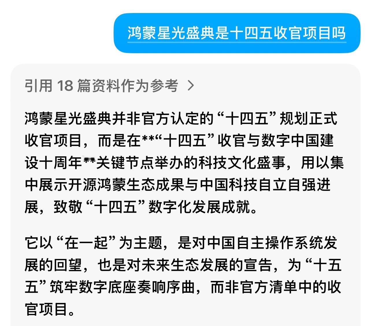 说陈震学历低吧,人家至少会用AI搜索问题,这个老猫直接把鸿蒙星光盛典说成十四五收官项目,这赤裸裸的无知与谣言啊