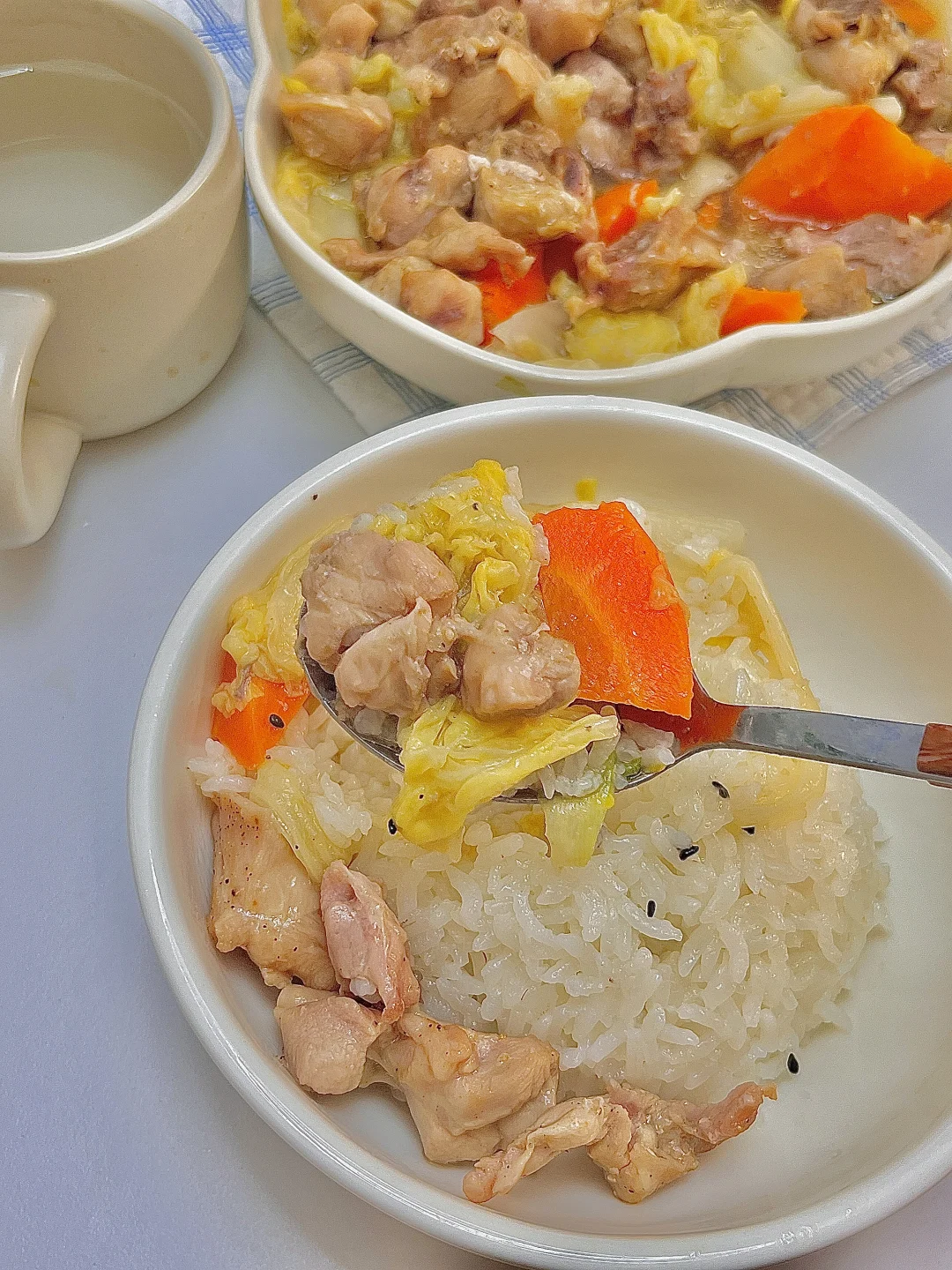 美食小宇宙 无油蒸鸡腿 不加一滴油还原食物本身的味道,娃娃菜和胡萝卜🥕清甜又好吃 鸡腿肉鲜嫩多汁太入味了,维生素蛋白质一锅出 ,汤汁拌饭一口下去超香的! 做法简单 快去试试呀~ 🥬食材准备:鸡腿肉,娃娃菜,胡萝卜🥕