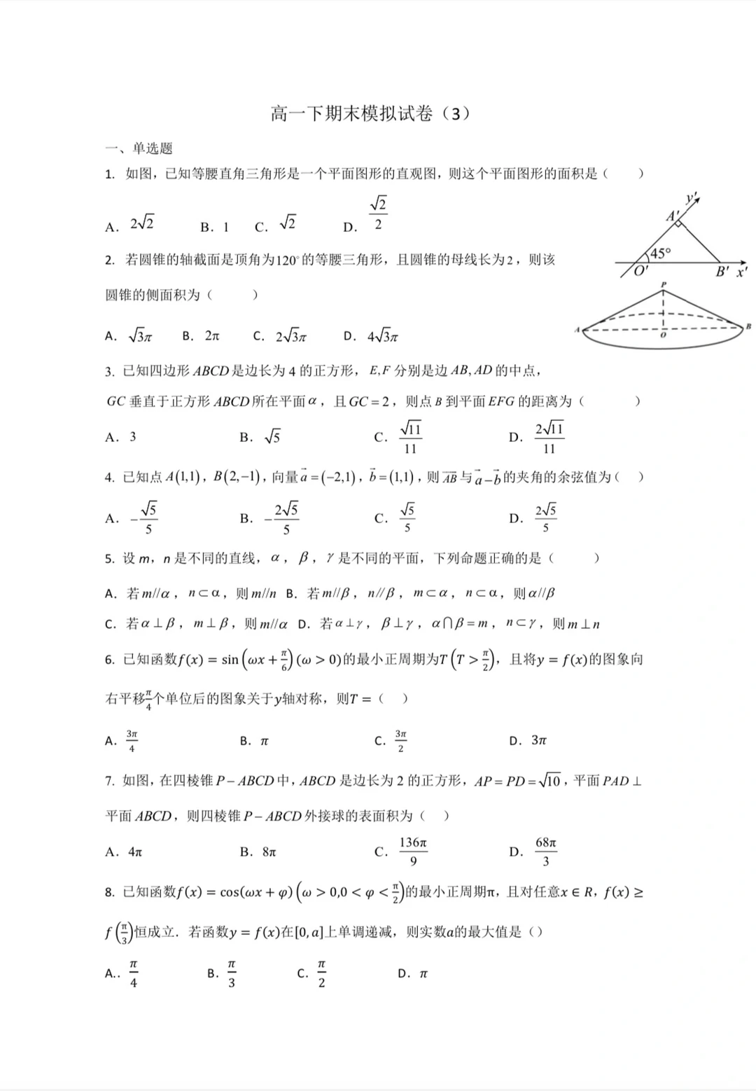 期末复习——高一下数学期末模拟试卷(押题卷)
