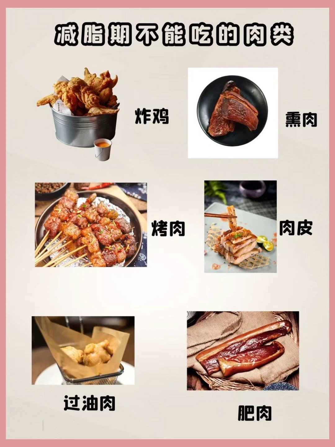不能吃什么:😱肥肉,腌肉,烤肉,炸鸡等重油重盐加工食物,鸡鸭鹅肉一定要是去皮的肉,还有动物内脏❗❗❗