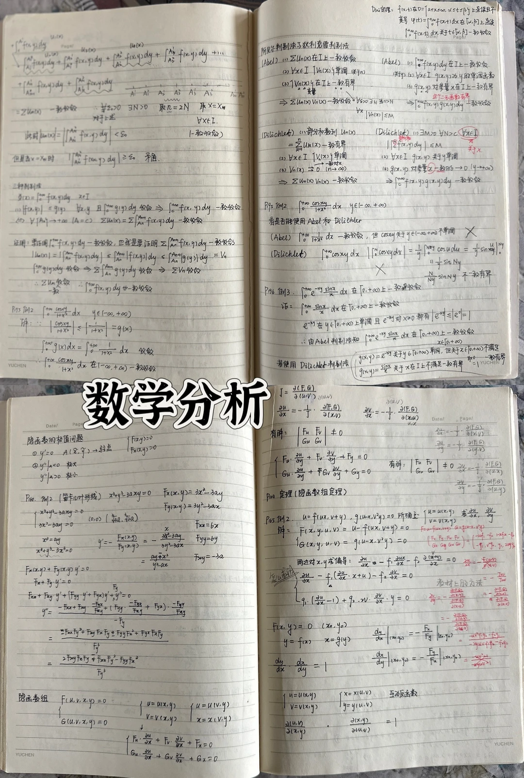 五一假期回家收拾东西,看到了大学七年! 学过的教材和记过的笔记📝 我的笔记真好看,青春的痕迹~ 在大家眼里,女生学数学是很奇怪的事,所以很佩服那时候自己,不知不觉都毕业4年了~ 这些课程的名字还记得,翻开曾经的笔记,真的是一点不懂了,不完全统计,拍了一些,数学分析,高等代数,实变函数,复变函数,近世代数,偏微分方程,解析几何,微分几何,概率统计,动力系统……