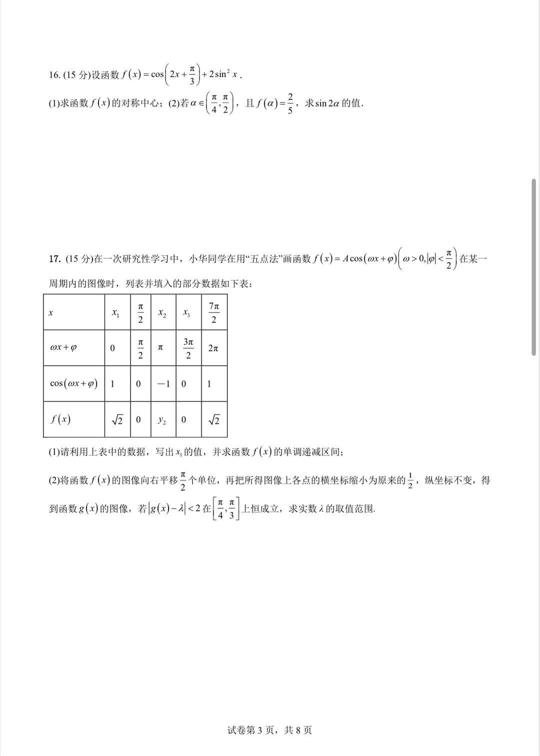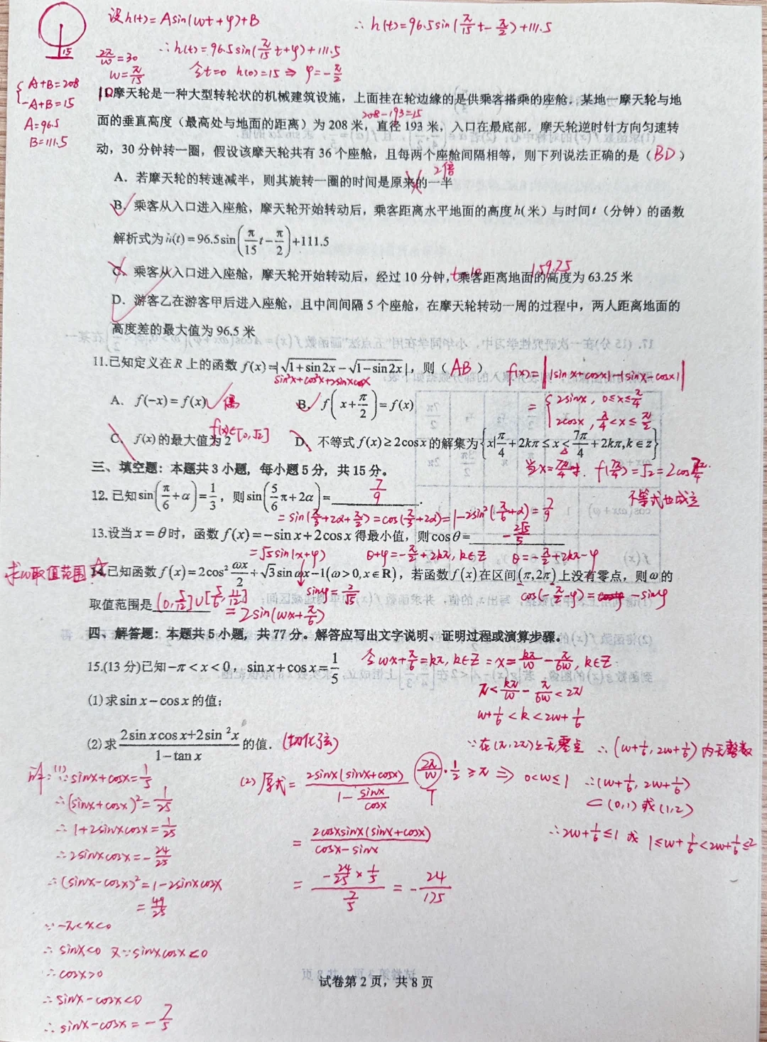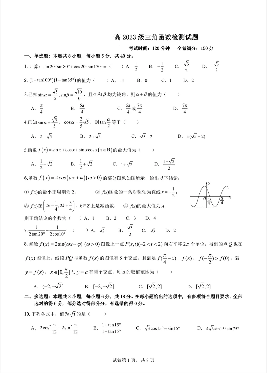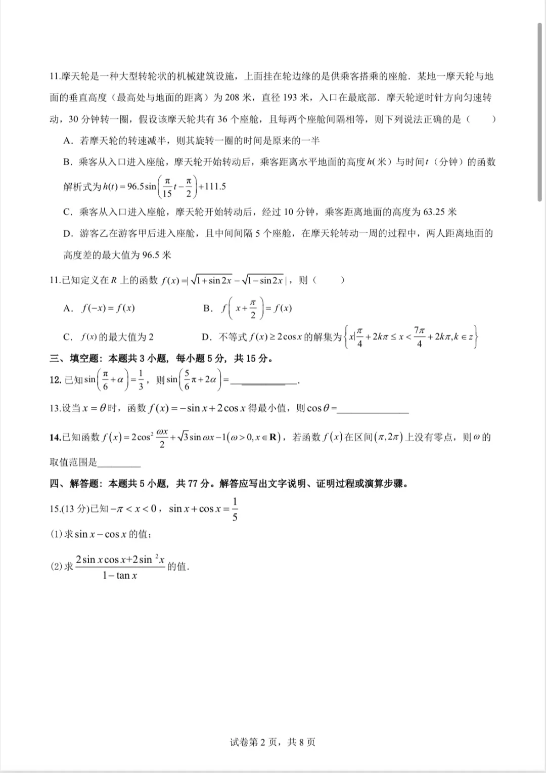 月考范围是三角函数和平面向量,三角函数的题目还是需要加强练习,年级统一的学习资料,供大家学习参考。