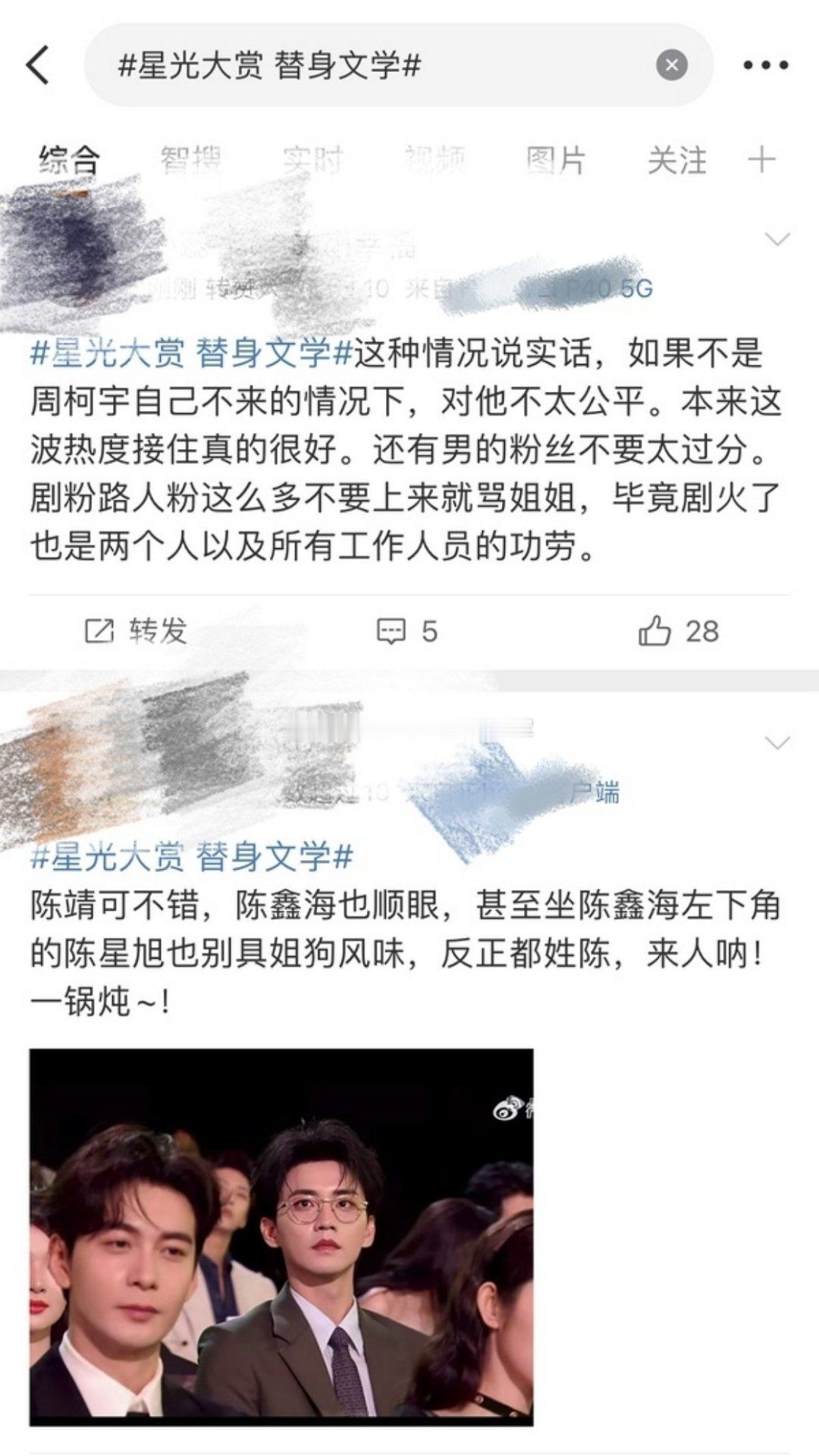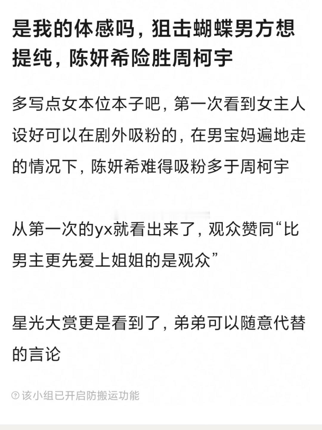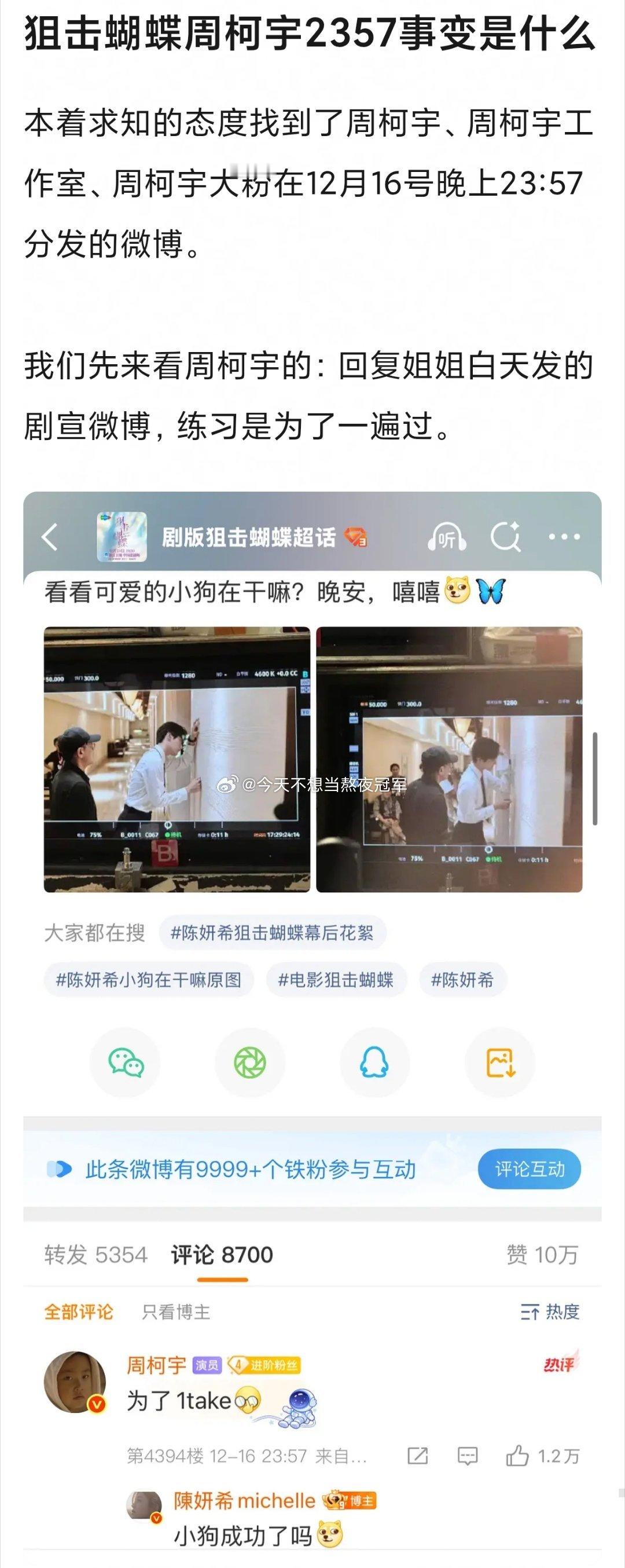 《狙击蝴蝶》这剧倒是挺神奇的,剧里没多少出圈梗,陈妍希、周柯宇cp热度倒挺高本来有很多路人夸追剧体验感好,没想到剧播完了倒吃上了tc发卖的🍉,又是替身文学,又是2357事变。。。陈妍希晒星光大赏合照
