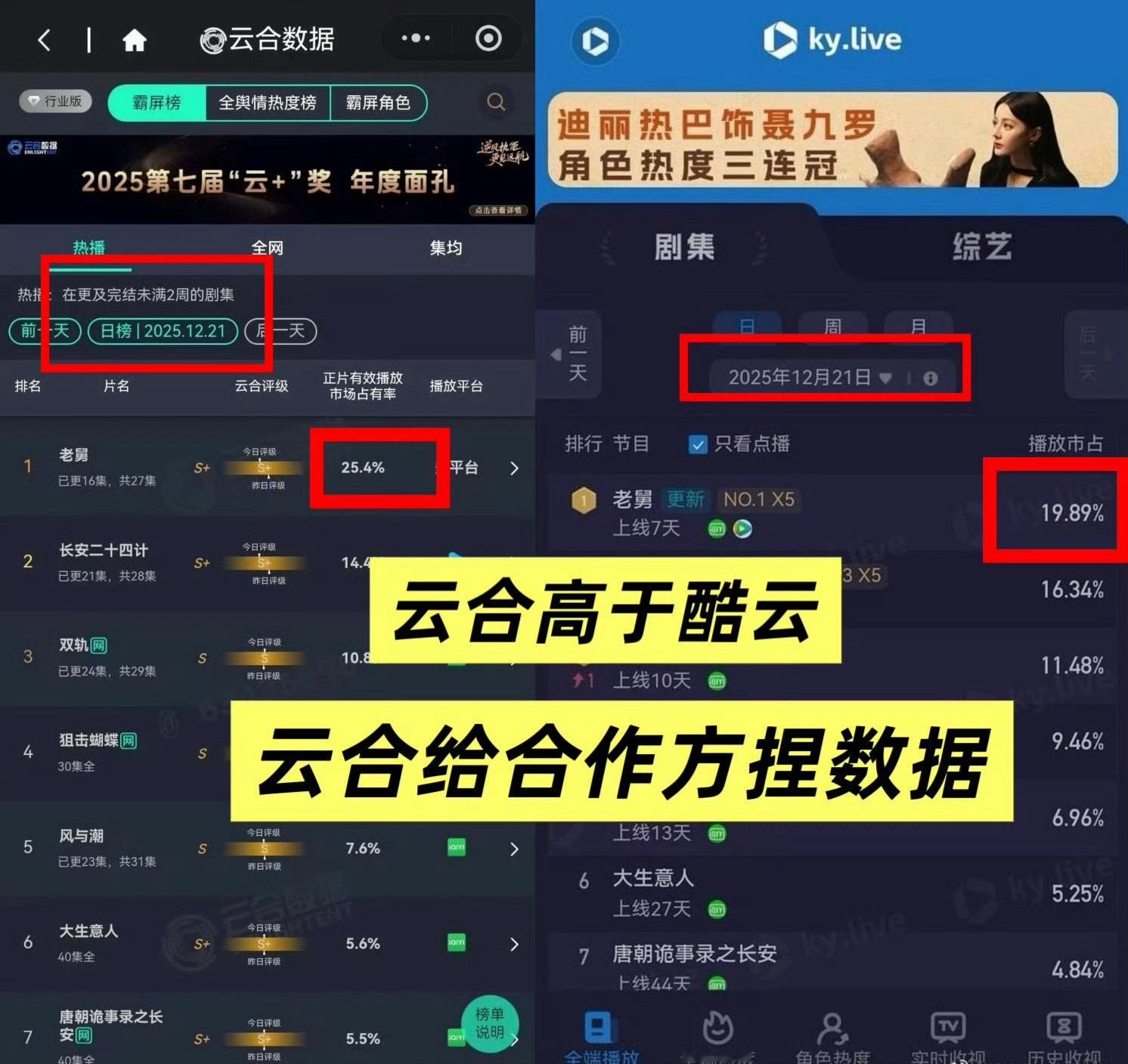 不愧是云合独家数据合作,云合比酷云播放量高好几百,别人的剧都是酷云比云合高。那以后想要云合好看,都找云合去了,人人都是“爆剧”。既然云合是家营销公司,播放数据哪来的权威?虚假繁荣救不了长剧,同期大流量剧真惨