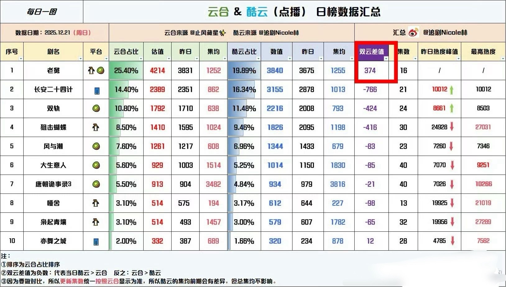 不愧是云合独家数据合作,云合比酷云播放量高好几百,别人的剧都是酷云比云合高。那以