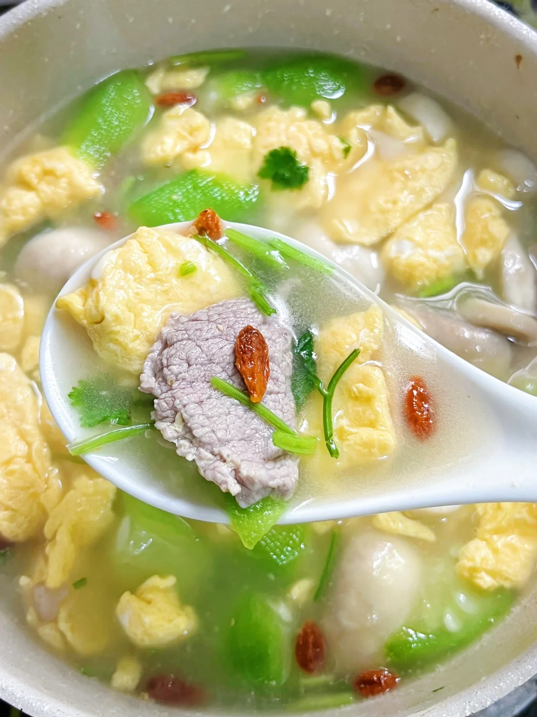鲜甜可口的丝瓜鸡蛋瘦肉汤,