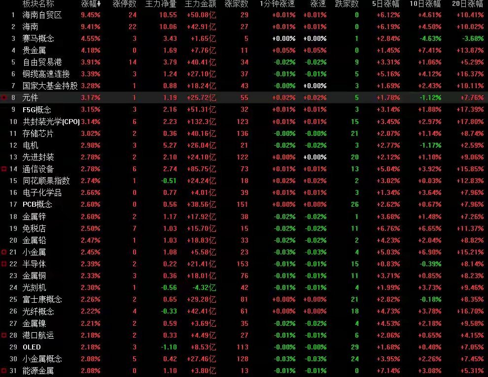 官媒点名!海南掀涨停潮!A股多热点轮动大幕拉开!四连阳!A股大盘仅用4个交易日,就从5日线下的破位形态,强势翻身站上所有短期均线,完成漂亮的弱转强!更亮眼的是,今天两市成交量暴增1300亿,妥妥的放量上涨走势!唯一美中不足的是,个股涨跌比差距不算大,上涨2900家、下跌2200家,市场赚钱效应并没有盘面看上去那么火爆。从技术面来看,大盘放量突破并站稳60日线中期压力位,这是否意味着新一轮中期上行趋势已经开启?想搞懂大盘中短期走向,咱们得先弄明白,这轮连续单边反弹到底靠的是什么?只有摸透反弹性质,才能精准判断后市走势!在上周的多篇文章里,林哥就和大家强调过,国家队关键时刻下场护盘,是上周三大盘绝地反击的核心推手。上周四,国家队选择观望,没搞大幅调仓,就是在观察市场多空博弈的态度变化。上周五开盘,大盘卡在5日线和20日线之间面临方向抉择,做多情绪再度动摇,又是国家队果断出手,才助力大盘稳稳站上20日线收盘。不过细心的老铁应该能发现,上周五大盘只在早盘冲高,午后就陷入窄幅震荡。结合保险、银行等权重股当天的走势来看,国家队也只是早盘发力帮大盘冲关,之后就没再继续干预行情走向了。今天的信号就更明显了!大盘跳空上涨的同时,银行板块逆势下跌压盘,保险和券商则维持窄幅震荡。这说明,现阶段国家队护盘的核心目的,只是托底大盘避免向下破位,压根没打算推动行情走出趋势性上涨。所以,今天两市延续反弹,和国家队的关系其实不大!在林哥看来,今天A股能跳空高开高走,离不开这几大关键推手:其一,外围市场传来利好!上周五日本央行加息落地,亚太股市利空出尽后集体大幅反弹;晚间美股三大指数同步走强,大型科技股领涨全场,尤其是英伟达大涨近4%,甲骨文、博通等前期跌幅靠前的科技股纷纷转涨。受此带动,今天A股AI算力硬件相关细分板块集体爆发,CPO更是创出阶段新高!要知道,AI算力硬件可是A股的人气风向标,这些板块活跃度回升,市场做多热情自然被快速点燃!其二,海南自贸区舆情大爆发,板块指数近乎涨停!刚刚过去的周末,央视新闻《海南封关“零关税”带来哪些红利》的报道直接冲上热搜。报道指出,这个全球面积最大的自贸区能顺利封关运作,背后是每个细节都被“盘到包浆”的极致较真。三亚市商务局数据显示,封关首日全市免税销售额就达到1.18亿元。热度飙升之下,A股海南本地股应声而动,几乎全线涨停,板块指数涨幅高达9%!虽说海南本地股数量不算多,但整版涨停的盛况,极大提振了全市场的交投活跃度!其三,地缘政治紧张升温,贵金属板块成避险香饽饽!近期全球多地冲突持续发酵,俄乌战争迟迟未休,美国加大对委内瑞拉石油封锁,周边泰柬冲突全面爆发,伊以冲突也有重燃风险。地缘风险加剧之际,贵金属板块直接受益,金价、银价加速井喷,尤其是银价涨幅格外亮眼。贵金属作为典型的顺周期板块,只要金银价格保持强势,相关板块的表现就不会差!今天贵金属板块就带动有色金属集体走强,板块指数涨幅超4%!从林哥的分析不难看出,今天A股的跳空大涨,是多个热点板块合力驱动的结果。除了上述领涨板块,近期主力机构加仓的主线热点,比如锂电池、可控核聚变、无人驾驶等,今天同样表现不俗。反观12月以来逆势连涨的商业航天板块,今天虽冲高震荡,但板块指数依旧红盘报收,韧性十足!既然周一的上涨是由点带面形成的,那么大盘想要延续强势,关键就看这些热点板块能不能持续发力!林哥给板块中短期持续周期分了三个档次:第一档,是持续周期超2个月的中期趋势性大热点;第二档,是持续周期约1个月的短期主线热点;第三档,则是只能短炒几天的短期非主线热点。通常来说,一个板块的持续周期,由行业景气度和市场资金面共同决定。能跻身第一档的中期趋势性大热点,必须同时满足行业景气度高涨和主力机构大幅加仓两大条件;第二档的短期主线热点,或许行业景气度没那么突出,但至少主力机构正处于大幅加仓阶段;至于第三档的非主线热点,往往是行业景气度偏低、主力关注度不足,只能靠游资炒作撑场面。这里要特别提醒一句,很多投资者对行业景气度的判断存在误区,觉得只要是高科技行业,景气度就一定高;传统行业的景气度就肯定不行。在林哥看来,判断一个行业基本面强弱,核心要看业绩是否进入释放期!不少高科技行业虽然概念火爆,但技术尚未落地,距离大规模商用还有很长一段距离,这种情况下,板块指数很难走出趋势性行情。咱们再回头看看近期表现亮眼的这些板块,不管是领涨的海南本地股、AI算力、贵金属,还是跟涨的锂电池、可控核聚变、无人驾驶,以及冲高震荡的商业航天,它们的持续性到底如何?在这些板块里,稳居第一档的,毫无疑问是AI算力中的CPO与存储芯片;此外,下游储能需求大增的锂电池板块,同样属于第一梯队。第二梯队则包括商业航天、可控核聚变和无人驾驶,这几个板块近期都获得主力机构大幅加仓,但行业大规模商用仍有距离,上市公司业绩也还没进入高速增长期;贵金属板块也能归到这一档,区别在于,贵金属有实打实的基本面支撑,只是主力买入力度相对有限。至于今天领涨的海南本地股,妥妥的第三梯队!虽说海南封关是重磅利好,但并非所有海南本地股都能深度受益,甚至连农业、养殖业都跟风大涨,明显是炒作情绪主导。从交易数据来看,机构对海