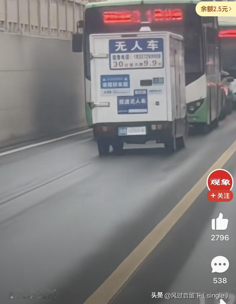 无人车就是牛!真把自己当成特殊车辆了! 大家都知道警车、救护车、消防车等特殊车辆在执行任务时可以闯红灯、逆行! 但是这个无人车就把自己比作特殊车辆了! 12月22日,一个无人车在行驶途中,因为遇到堵车,很久不动的情况下,于是就实线变道,驶入对向车道,然后就挡住了正常行驶的公交车! 这无人车是拉了什么重要东西,还是要执行什么重要任务,把自己都当作特殊车辆了,还敢实线变道、逆行,真的太把自己当回事了! 所以把这些生产出来虽然节省了人力,但是再怎么智能也代替不了人,毕竟遇到一些特殊情况时候,它要么只会原地等待,要么就出现图片上这情况! 所以为了交通安全,还是人比较有保证!无人车辆