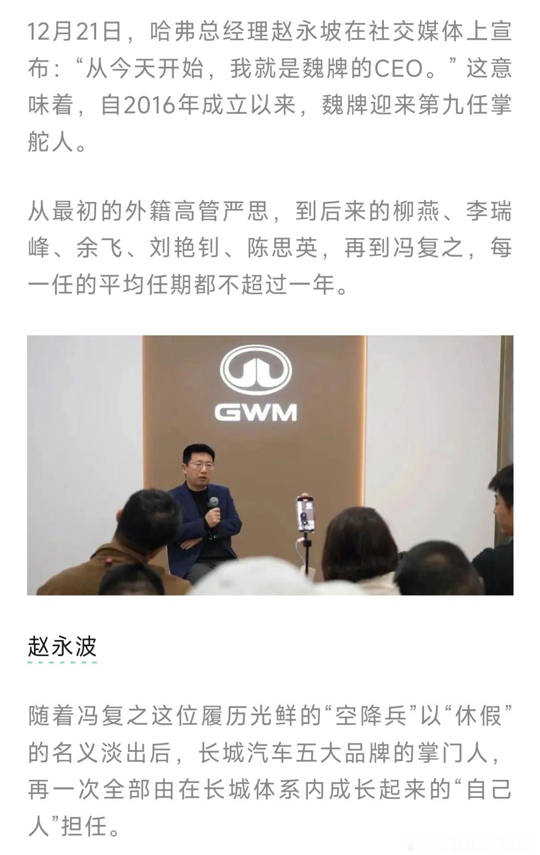 魏建军:魏牌,只有产品力,没有营销力和品牌力。前N任魏牌CEO:忙活半天感情我们都是白忙活魏建军赌上姓氏造车后悔了吗曝长城魏牌ceo冯复之休假魏牌长城汽车 北京
