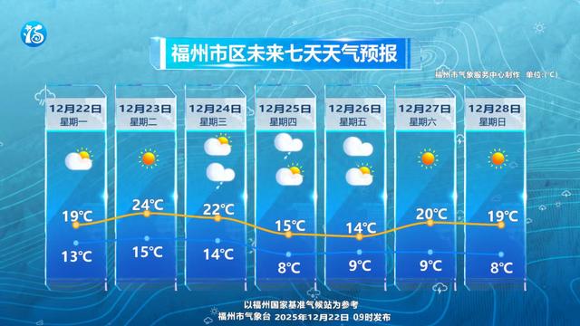 明日起,天气格局有所转变,阴雨增多。明天夜间,随着新一轮冷空气渗透,气温开启下滑模式,后天福州市区高温跌至15℃,低温仅剩个位数。市民需注意添衣保暖,避免着凉。
