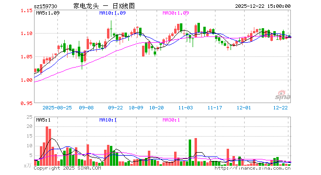 12月22日,龙头家电ETF(159730)跌0.09%,成交额44.05万元。当日份额减少100.00万份,最新份额为3057.13万份,近20个交易日份额减少200.00万份。最新资产净值计算值为3348.17万元。