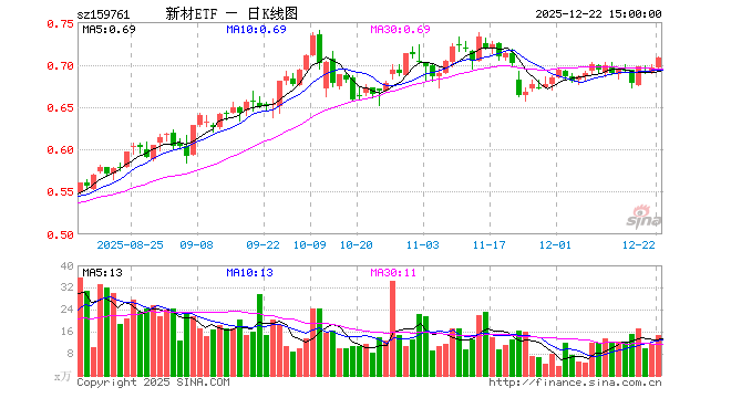 12月22日,新材料50ETF(159761)涨1.72%,成交额1043.89万元。当日份额增加200.00万份,最新份额为2.34亿份,近20个交易日份额减少900.00万份。最新资产净值计算值为1.65亿元。