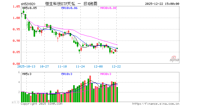 12月22日,恒生科技ETF天弘(520920)涨0.12%,成交额2.58亿元。当日份额增加2.00亿份,最新份额为118.19亿份,近20个交易日份额增加40.00亿份。最新资产净值计算值为101.61亿元。