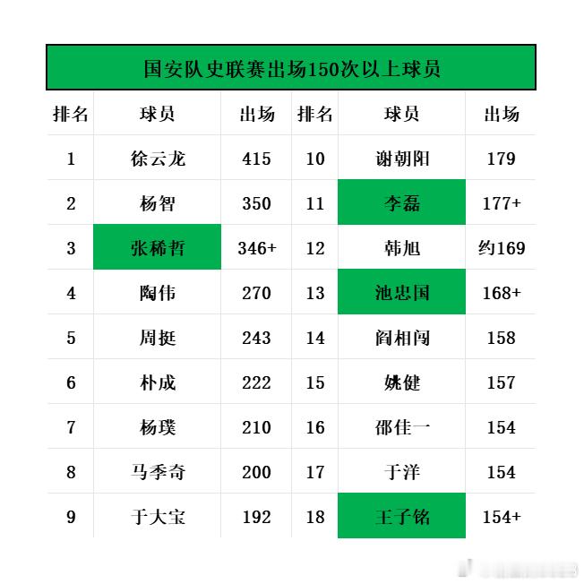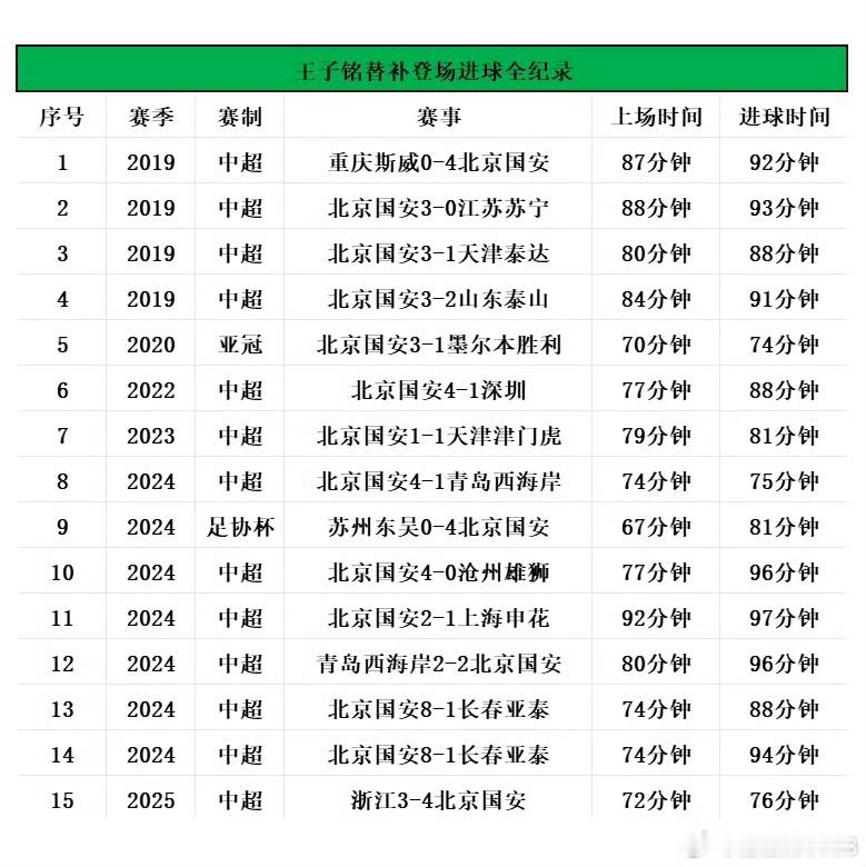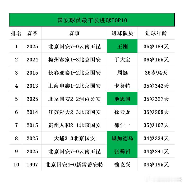 北京国安赛季末大盘点⑤📊本赛季刷新的纪录+值得一说的数据(中)本期球员:侯森、塞尔吉尼奥、恩加德乌、古加、达万、林良铭、王刚、李磊、池忠国、柏杨、王子铭、杨立瑜、江文豪、张健智,及主教练塞蒂恩、拉米罗。分三期写,这是第二期·【侯森】🎉【新纪录·国安球员征战联赛赛季数】🙌本赛季是侯森进入国安大名单的第19个赛季(2007-2025),打破老队长徐云龙18个赛季(1999-2016)的纪录,成为国安一线队效力年头最久的球员;张稀哲17个赛季排名第3。·🎉【新纪录·面对点球次数】🙌截至本赛季结束,侯森已经43次面对点球(含点球大战),超越杨智的41次,成正赛面对点球次数最多的国安门将。【图1】📊侯森43次面对点球情况。·🎉【新纪录·扑出点球次数】🙌截至目前,侯森已经5次扑出对方点球,扑点次数超越杨智。 1️⃣ 2021 肖鲲(四川九牛) 2️⃣ 2024 莱昂纳多(浙江) 3️⃣+4️⃣ 2025 阿利米、刘逸(大连英博) 5️⃣ 2025 阿齐兹(青岛西海岸) ·👑【队史首位·点球大战两次取胜的门将】🙌侯森共为国安出战过4次点球大战,其中本赛季的2次均取胜,两项数据都是队史最多。·👑【队史第二人·单场点球大战扑出2球】🙌继1995赛季的符兵之后,侯森成为国安队史第2位在正赛点球大战中扑出对方2粒点球的门将,并且是队史首次迫使对方罚失3粒点球。··【塞尔吉尼奥】7️⃣【队史第七人·国内球员处子赛季10+球】⚽塞尔吉尼奥本赛季初加盟北京国安,一年下来共完成10球8助攻,在首个赛季便进球上双,成为继高峰、高洪波、小王涛🕯️、阿兰和林良铭等6人之后,队史第7位达成此成就的非外援球员。🥈【队史第二·归化球员出场数】⚽本赛季塞尔吉尼奥为国安出战34场比赛,超越阿兰、侯永永,在国安队史归化球员出场数位列第2位,仅次于李可(98场)。··【恩加德乌】🥇【队史第一·非洲外援出场数】⚽恩加德乌为国安征战3个赛季,各项赛事出场92次,超越巴坎布(87次)成为国安队史出场最多的非洲外援,在所有外援中位列第5。 📊 国安外援出场数TOP5 1️⃣ 🇭🇷 马季奇 242场 2️⃣ 🇧🇷 奥古斯托 152场 3️⃣ 🇭🇳 瓦尔特·马丁内斯🕯️95场 4️⃣ 🇦🇺 乔尔·格里菲斯 93场 5️⃣ 🇨🇲 恩加德乌 92场🥇【队史第一·外援中卫进球数】⚽恩加德乌各项赛事为国安打进6球,力压巴辛、梅米舍维奇等,成为国安队史进球最多的外援中卫。🥉【队史第三·亚洲赛场进球年龄】⚽恩加德乌在亚冠二级联赛客场对阵大埔的比赛中打入1球,进球年龄为34岁334天,队史亚洲赛场进球年龄位列第3。 📊 国安亚洲赛场进球年龄TOP3 1️⃣ 池忠国VS河内公安 35岁327天 2️⃣ 卡努特VS首尔FC 35岁261天 3️⃣ 恩加德乌VS大埔 34岁334天 · ·【古加】9️⃣【队史第九·外援联赛出场】⚽赛季末接近离队的古加为国安效力2个赛季,各项赛事出场67次,打进10球,助攻9次;其中联赛出场59次,在国安队史外援联赛出场数位列第9。 📊 国安队史外援联赛出场数TOP10 1️⃣ 🇭🇷 马季奇 200场 2️⃣ 🇧🇷 奥古斯托 122场 3️⃣ 🇭🇳 瓦尔特·马丁内斯🕯️87场 4️⃣ 🇨🇲 恩加德乌 79场 5️⃣ 🇦🇺 乔尔·格里菲斯 77场 6️⃣ 🇨🇩 巴坎布 71场 7️⃣ 🇦🇴 法比奥 70场(暂) 8️⃣ 🇪🇸 比埃拉 65场 9️⃣ 🇵🇹 古加 59场 🔟 🇧🇷 拉尔夫 57场 🔟 🇰🇷 姜祥佑 57场 注:此前大家比较关心的卡西亚诺未进前十。8⃣️【队史第八人·外援任意球破门】⚽古加成为继冈波斯、巴辛、科内塞、大马丁、索里亚诺、比埃拉和奥古斯托之后,国安队史第8位完成过直接任意球破门的外援。⚽古加是国安队史第24位进球数上双的外援。⏰本赛季古加与法比奥两名球员在30轮联赛均有出场,无一场缺席,近两个赛季仅缺席1场联赛。【图2】📊国安各赛季联赛全勤球员。··【达万】⚽这是达万为国安出战的首个赛季,便已经在三线赛事参与进球(联赛、足协杯进球,亚冠二级联赛送出助攻),上一位做到这一点的还是2020赛季的阿兰。⚽达万本赛季贡献7次助攻,在近15个赛季所有外援首个赛季的助攻数仅次于2018赛季的比埃拉(12次助攻)。··【林良铭】🥉【队史第三·国内球员前两赛季进球数】⚽林良铭在为国安效力的前两个赛季共收获18粒进球,队史国内球员中仅次于小王涛(28球)和高峰(19球),与高洪波并列队史第3位。【图3】📊前两赛季进球上双的国内球员。⚽截至本赛季结束,林良铭5次助攻法比奥破门,与张稀哲并列为法比奥送出助攻最多的队友(此外,林良铭曾4次接法比奥助攻破门)。··【王刚】🎉【新纪录·队史最年长进球队员】⚽王刚在足协杯半决赛对阵云南玉昆的比赛中打进全场第2球,进球年龄为36岁184天,就此打破由于大宝在上赛季刷新的纪录(36岁155天),成为国安队史最年长破门球员。【图4】📊队史最年长进球队员TOP10。··【李磊、池忠国】👑【队史十四人·出场数达200场】⚽本赛季李磊、池忠国相继达到各项赛事为国安出战200场的里程碑,加上此前的谢朝阳、韩旭、姚健、徐云龙、杨璞、陶伟、杨智、周挺、马季奇、张稀哲、朴成、于大宝,国安已经诞生14名200场先生。🥇池忠国【队史第一·亚洲赛场进球年龄】⚽本赛季首回合对阵河内公安,池忠国一记远射扳平比分,进球年龄为35岁327天,超越了2013赛季卡努特对阵首尔FC的进球年龄(35岁261天),成为队史亚洲赛场最年长进球。··【柏杨
