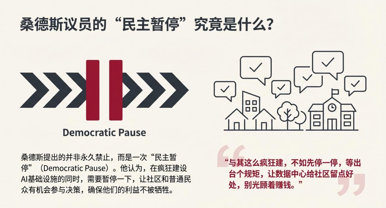 一场AI辩论,为何被扣上"通敌"的帽子? 这件事始于一位美国参议员的提议,和一句"给中国递刀子"的指控。 美国佛蒙特州参议员伯尼.桑德斯(Bernie Sanders)提出暂停新建AI数据中心,立即在华盛顿和硅谷引发了争议。 反对者声称,这一举动无异于"损害国家安全"。本篇将层层解析,这场风暴背后真正的矛盾是什么?[机智]