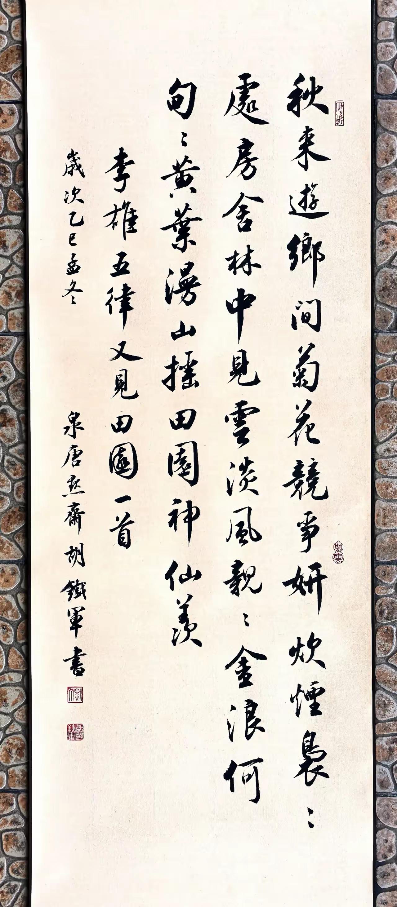陶渊明诗集联。草书作品里,我喜欢盖个拦腰章,就是看哪里有洞补哪里。草书我的书法