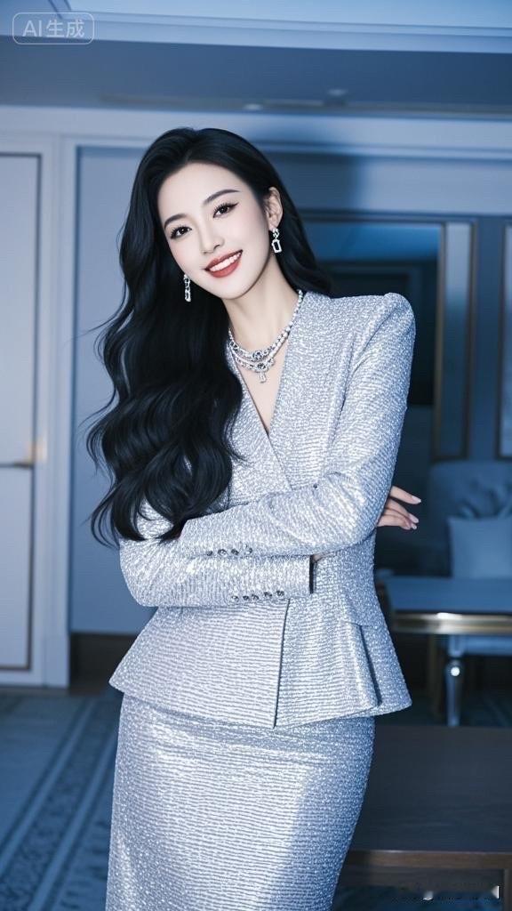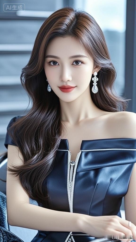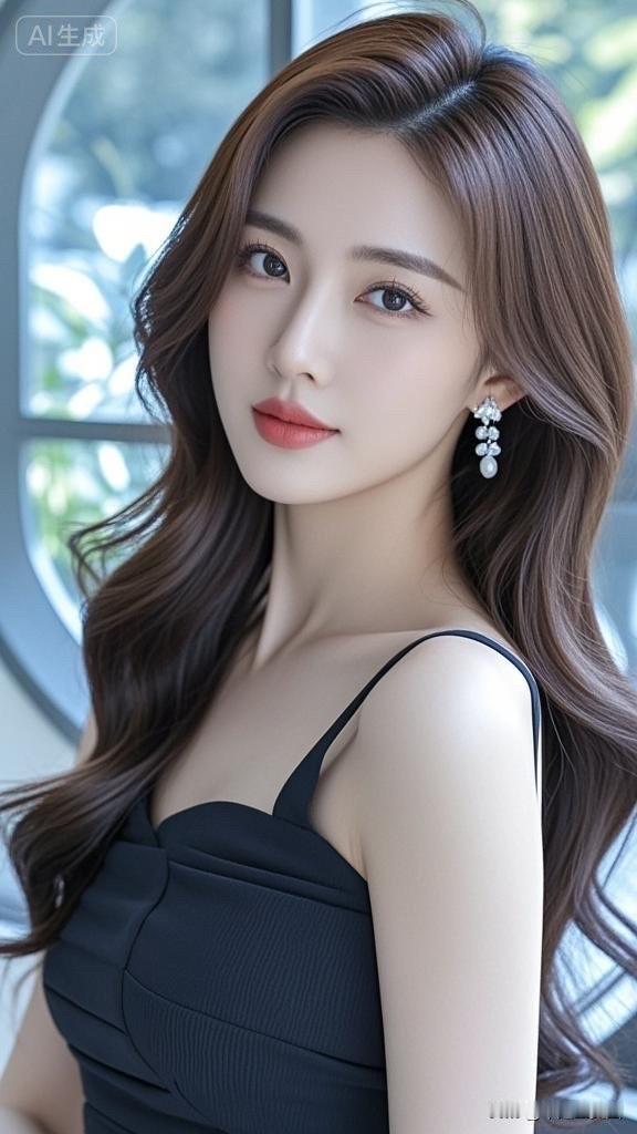 优雅黑发美人,红唇微笑,闪耀耳环,复古风穿搭。高雅气质美女美女人像群
