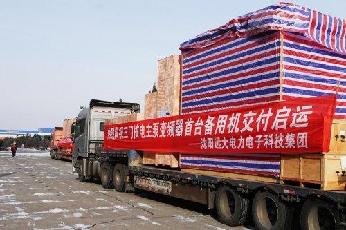 近日,三门核电站迎来核心装备供应的关键节点,沈阳远大电力电子科技集团供应的第五台主机主泵变频器(2025年度主机最后一台)与首台备用机主泵变频器,经过全流程严格出厂测试后正式启运。