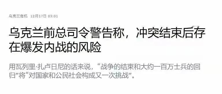 仗打完了,事就完了?乌克兰前总司令扎卢日内最近发出警告:等俄乌冲突一结束,乌克兰可能马上就得面对另一场危机——内部动乱。这话可不是随口说说,扎卢日内直接点出了最让人不安的因素——那些从前线回来的士兵。 这番警告绝非危言耸听,那些在前线浴血奋战的乌克兰士兵,一旦战争落幕重返社会,确实可能成为点燃内部动乱的导火索。 首先得看清乌克兰军队的规模,泽连斯基曾公开表示乌军总兵力已达88万人,而扎卢日内直接点出约100万士兵未来需要安置,这个数字放在任何一个国家都是不小的负担,更何况是被战争掏空的乌克兰。 战争期间,这些士兵的任务是杀敌、守城,可和平到来后,他们的身份要从战士切换回平民,这个转变本身就充满挑战,而乌克兰早已濒临崩溃的财政,根本无力为这么多退役军人提供像样的安置保障。 两千多年前的迦太基就曾吃过类似的亏,第一次布匿战争结束后,迦太基政府遣散了大批雇佣兵,却因为战争消耗导致财政拮据,无法足额发放军饷。 这些手握武器、习惯了战场法则的雇佣兵瞬间反戈,引发了长达三年的暴乱,让本就虚弱的迦太基国力再遭重创。 如今的乌克兰处境比当年的迦太基好不到哪里去,战争已经摧毁了国内大量基础设施,工业生产停滞,农业种植也受严重影响,战后重建都需要依赖外部援助,哪里还有多余的资金给退役军人发补贴、找工作。 乌克兰退役军人事务部虽有就业培训、住房补贴等政策,但那是2020年前后的规划,经过这几年的战争,这些政策早已名存实亡,等到士兵们解甲归田,大概率会面临找不到工作、无家可归的困境。 而那些饿着肚子的武装人员,很容易被别有用心之人煽动,从保家卫国的战士变成破坏稳定的隐患。 除此之外,更棘手的是这些士兵身上的战争创伤,这可不是靠几句安抚就能抚平的。 美国兰德公司的报告显示,约30%的驻伊美军回国3到4个月后会出现焦虑、易怒、做噩梦等心理问题,严重者会被诊断为创伤后应激障碍,仅有30%能完全康复。 这些美军士兵回国后,参与谋杀、枪击等暴力事件的案例屡见不鲜,2012年美国大兵罗伯特・贝尔斯闯入阿富汗村庄扫射,打死17名平民,背后就是长期战场压力导致的心理崩溃。 乌克兰士兵经历的战争强度不亚于伊拉克战场,持续数年的巷战、炮轰,让他们见惯了生死,双手沾满了鲜血,这种记忆会像影子一样跟着他们。 而乌克兰的心理疏导体系本就薄弱,战争期间更是几乎瘫痪,这些带着心理创伤的士兵回到社会,很可能因为一点小事就情绪失控,甚至动用在战场上习得的暴力手段解决问题。 另外,士兵群体的构成也十分复杂。 乌克兰军队中不仅有正规军,还有亚速营这样的极右翼志愿部队。 联合国人权事务高级专员办事处曾多次报告,亚速营成员存在非法拘禁、拷打平民等战争罪行,其内部不乏新纳粹主义者,创始人比列茨基甚至宣称要发动“白人圣战”。 这些人本身就有极端思想,战争期间被军队纪律暂时约束,一旦战后被遣散,他们不会轻易放弃手中的武器,更不会认同普通的社会秩序。 他们可能会抱团形成武装团伙,打着“维护民族利益”的旗号,从事极端活动,甚至与政府对抗。 更麻烦的是,乌克兰社会对这些士兵的态度已经开始转向敌视,扎卢日内的言论也证实了这一点。 当保家卫国的士兵回国后得不到尊重,反而遭受排挤,他们的归属感会瞬间崩塌,原本对国家的忠诚可能转化为怨恨,这种情绪一旦蔓延,很容易引发大规模的抗议甚至武装冲突。 除了这些情况之外,还要考虑到武器流失的问题,战争期间,大量枪支、弹药流入士兵手中,这些武器不会因为战争结束就凭空消失。 美国退伍军人回国后仍有不少人枪不离身,甚至应门都拿着枪,乌克兰的管控能力远不如美国,战后很可能出现大规模武器流入民间的情况。 当失业、心理创伤、社会敌视这些问题叠加在一起,再加上随手可得的武器,任何一点小摩擦都可能引发连锁反应,从个人暴力事件升级为群体冲突。 乌克兰政府在战争期间就已经暴露出治理能力不足的问题,腐败丑闻频发,连前线士兵的补给都曾出现短缺,这样的政府在战后想要整合数百万带着武器和创伤的士兵,难度可想而知。 历史已经给出过太多教训,无论是迦太基的雇佣兵暴乱,还是美国战后老兵引发的社会问题,都证明了战争的结束从来不是麻烦的终结。 对于乌克兰来说,那些从前线回来的士兵,就像一堆随时可能被点燃的干柴,只要有一点火星,就可能引发一场无法控制的内部动乱。