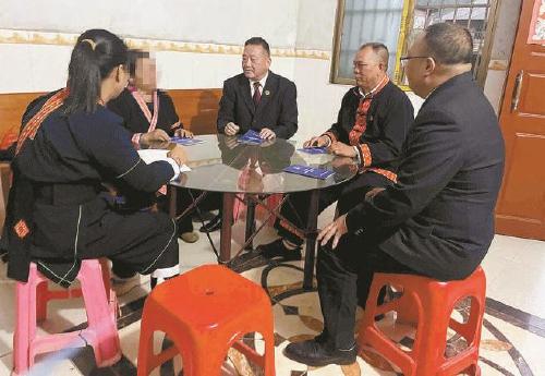 清远市连南瑶族自治县检察院检察干警与“瑶老”对当事人释法说理。