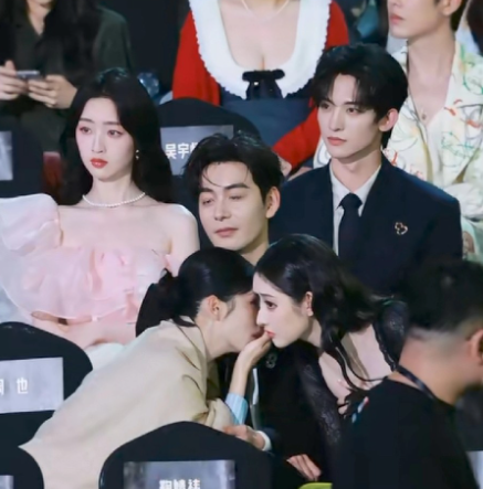 王玉雯跟周也说悄悄话,之间隔着陈星旭不妨碍她们聊得高兴,我真怕她俩聊嗨了一起拍陈星旭大腿