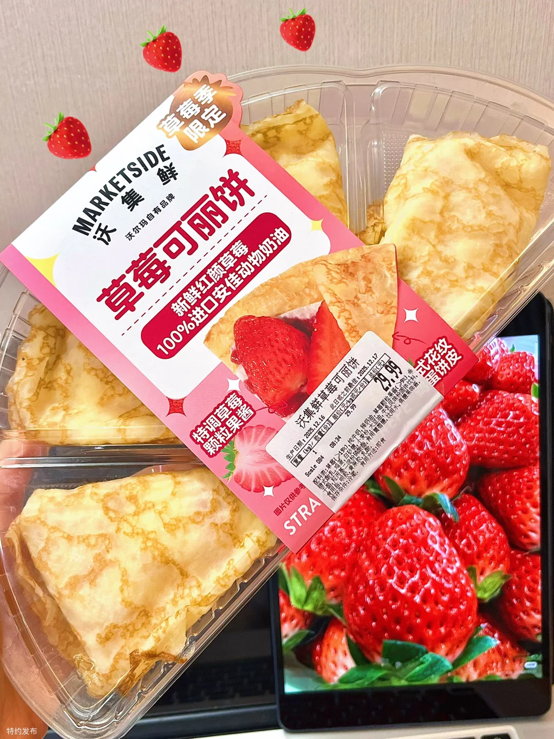 今天吃了沃集鲜草莓可丽饼🍓