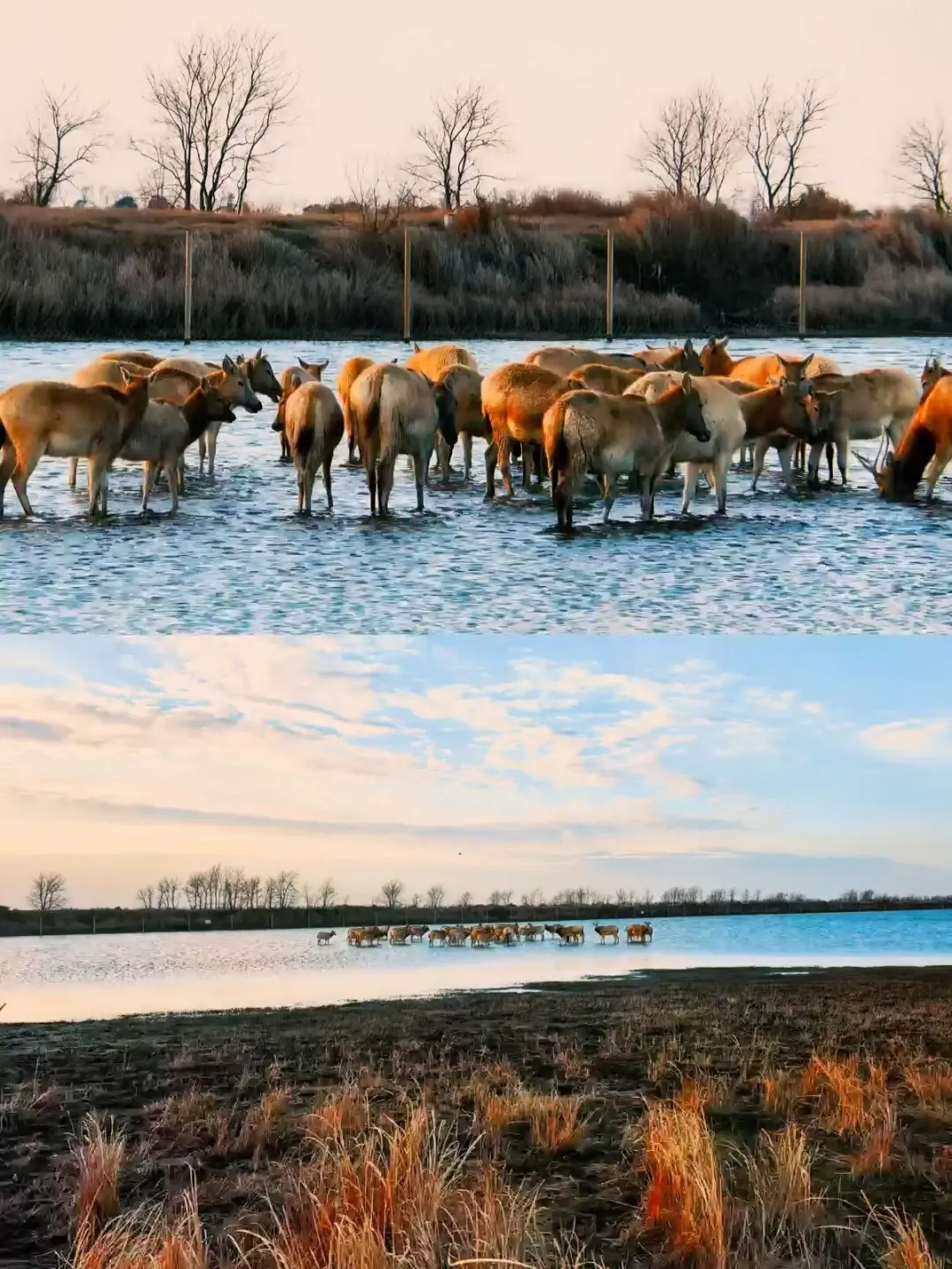 时间:冬天的野鹿荡真的非常美,尤其是成片的芦苇已经黄透了,很有种非洲大草原的感觉。