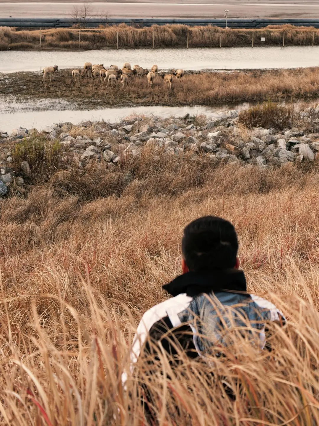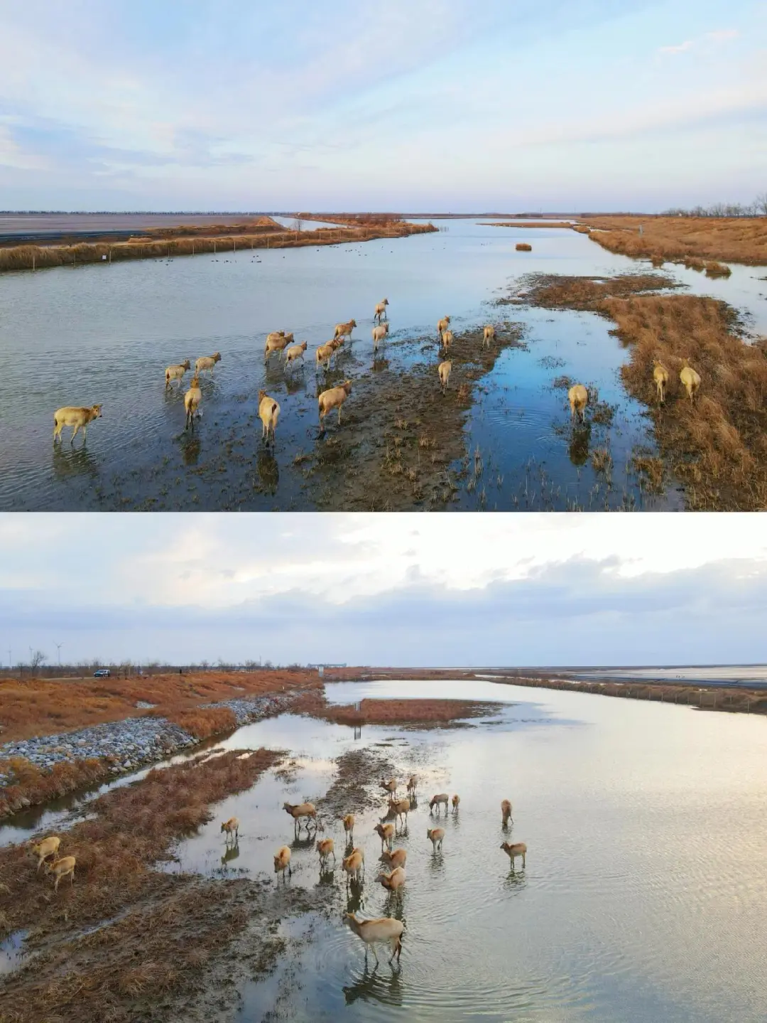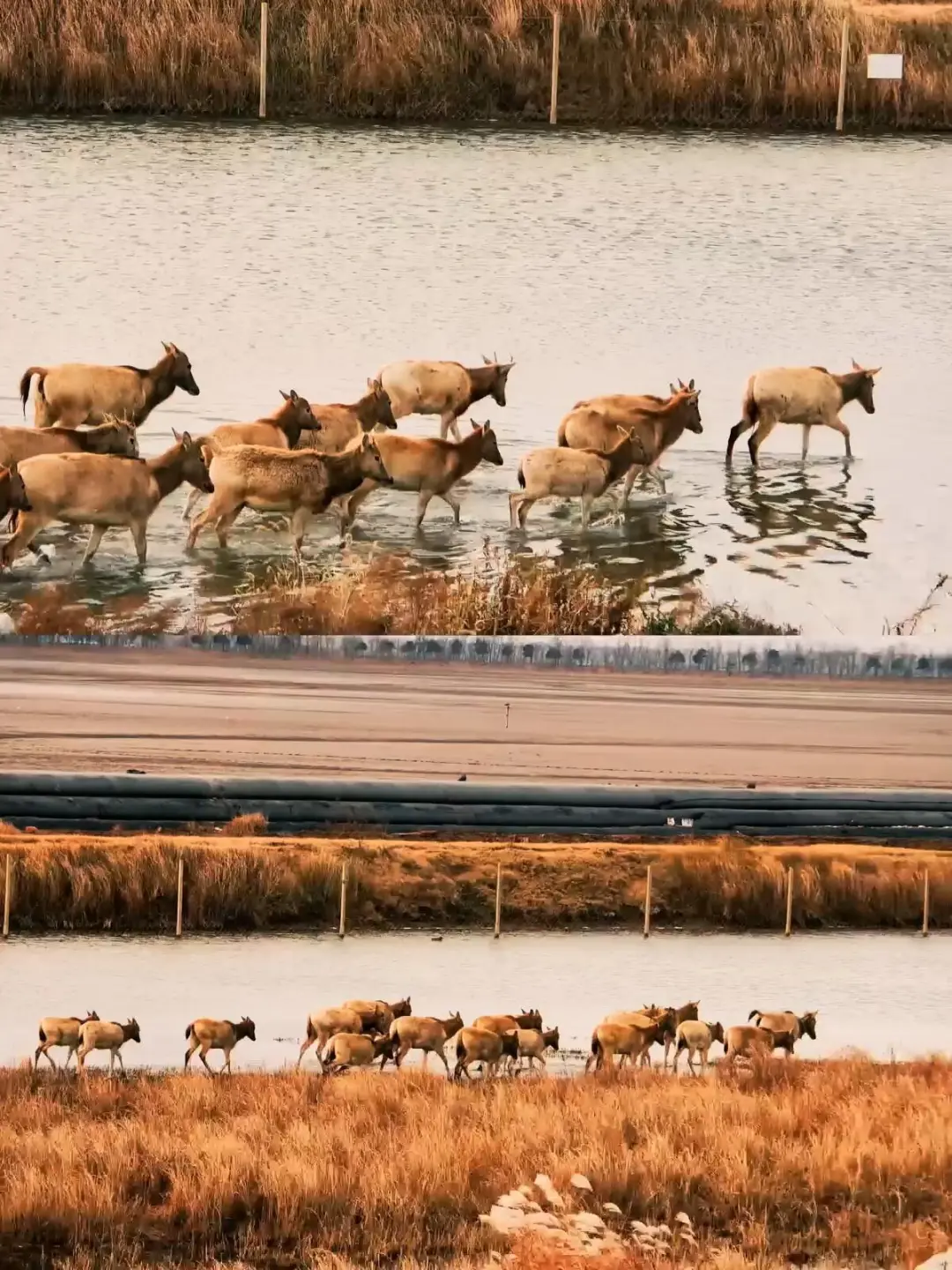地点:导航黄海野鹿荡,建议提前一天来住在附近,第二天早起,先导航日出海湾看日出,日出后便可导航“黄海野鹿荡”,这一条路上都在麋鹿保护区的核心区,目前只要不进景区都是免费的,这一路上都有可能邂逅野生麋鹿群。