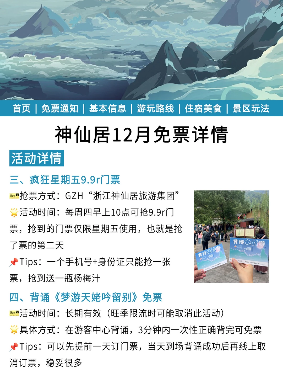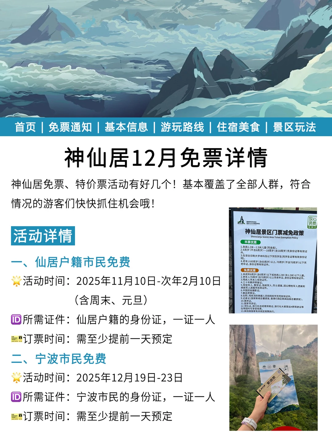 🏡快抓住机会!2025年11月10日-次年2月10日(含周末、元旦),仙居户籍市民可以免门票