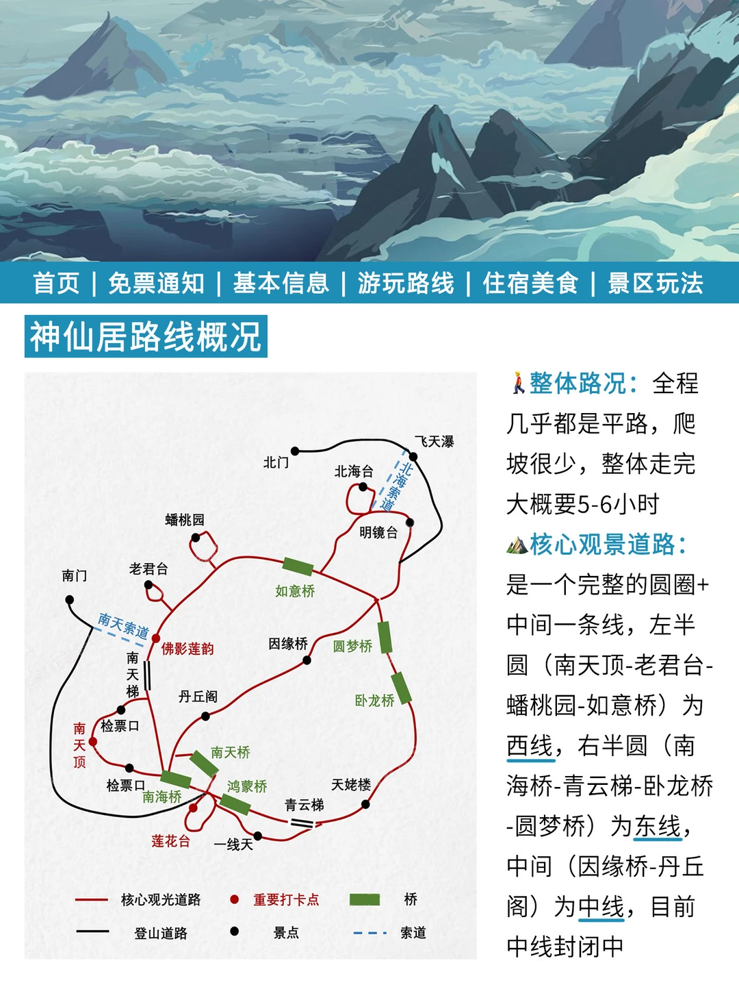 1、景区南门或北门周边:适合赶早入园和看云海的宝子