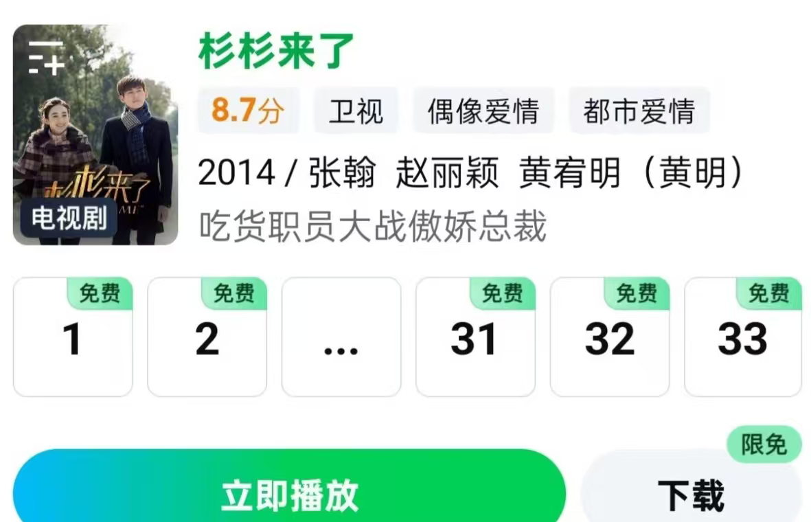 顾漫的影视化作品全限免了顾漫作品全限免了 《骄阳似我》开播后,顾漫的影视化作品《何以笙箫默》《杉杉来了》《你是我的荣耀》全都限免了,这种商战多来点