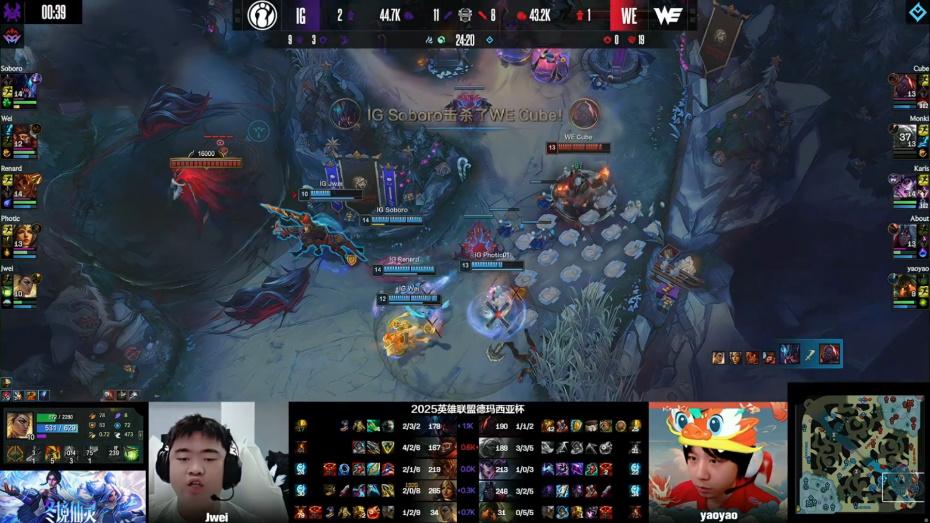 24分钟:IG关键眼位抓住韦鲁斯破绽,开团击杀两人拿下厄塔汗和听牌小龙