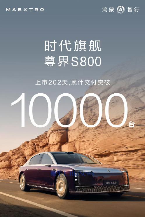今日,据博主“我鸿”消息,尊界S800上市202天,累计交付已突破10000台。
