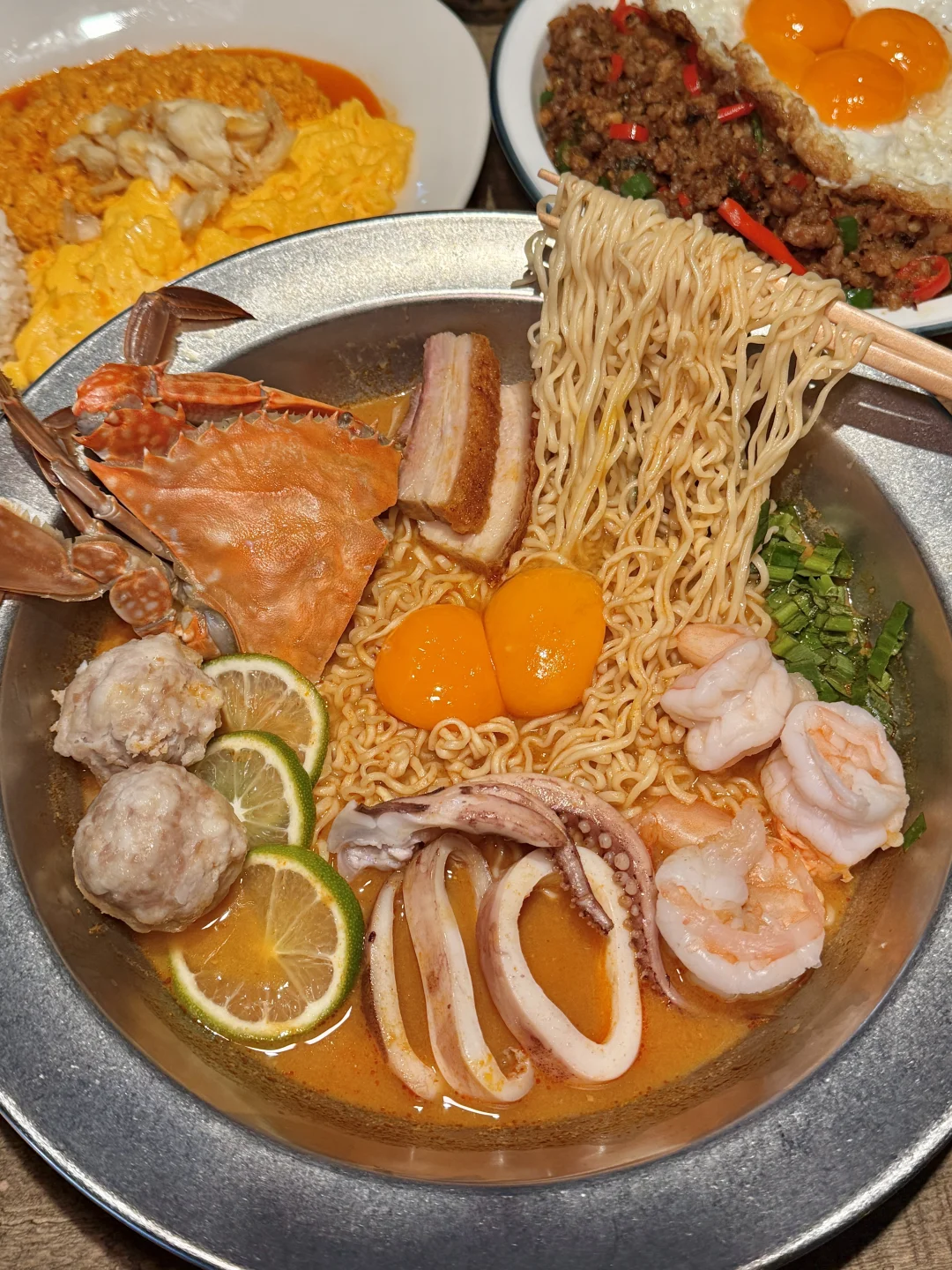 沈阳终于有了!!!曼谷街边同款整条超大鱿鱼船面🦑!一口惊艳! 跟泰国🇹🇭本地一模一样……预计是下个顶流! ✔️个人比较推荐的: ▫️打抛猪肉配炸鸡蛋 打抛饭相当好吃!!!很接近本地味道 ▫️蟹肉滑蛋饭 料给的特足!一人食也是很nice的选择! ▫️泰式斑斓糕 ▫️鲜制泰式炼乳香蕉飞饼 脆脆的飞饼浇上炼乳后香甜酥脆吼吼次! 基本上滚菜单都没踩雷!居然有这么美味的泰餐进入沈阳!! 沈阳 沈阳美食 泰国菜 泰国料理 宝藏 餐厅分享