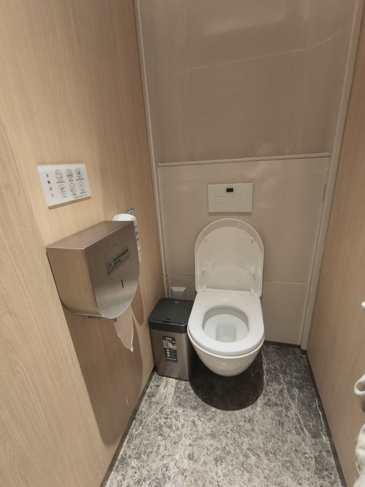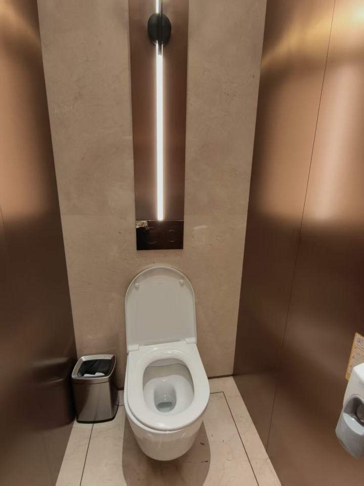 隔间空间宽敞,关上门没有压抑感,清洁频率也高,全程没看到任何污渍。