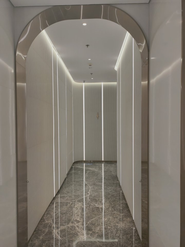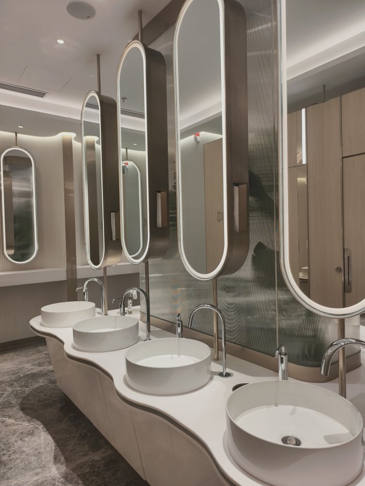 嘉里中心B1层厕所的“出圈点”很特别——网友说“这里的光拍人像超显白”。记者实地试了下,洗手区的嵌入式线性灯带、镜前背光、天花板漫射光三重加持,光线均匀又柔和,不仅能弱化面部瑕疵,还自带“磨皮效果”,同行小伙伴随手拍了张照,确实很出片。