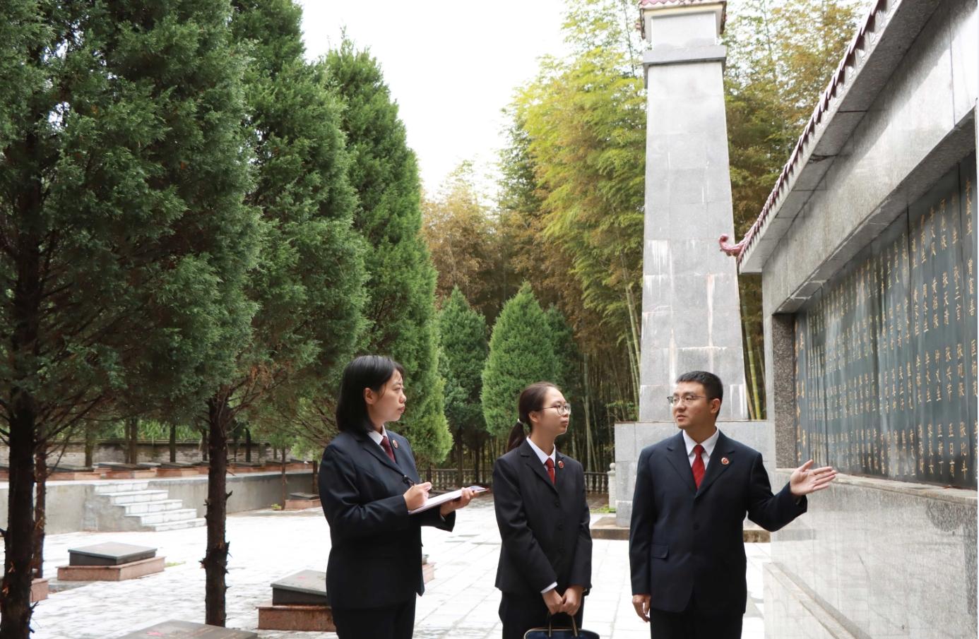 检察干警查看革命烈士英名录维修保护情况