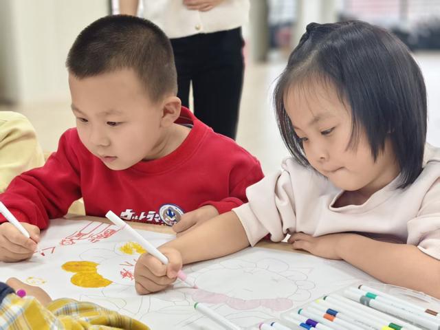 “我知道!因为有些垃圾可以变成新东西!”五岁的张铭灏高高举起小手,稚嫩的声音里透着自信。孩子们的热情瞬间被点燃,七嘴八舌地讨论起来。社区工作人员王田田适时展开垃圾分类知识的讲解:“这位小朋友说得对!可回收物就像宝贝,经过处理可以重新利用。而我们今天要一起完成的这幅画,就是告诉大家怎样保护我们的地球家园。”