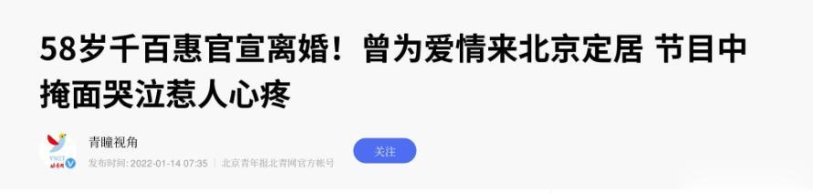 到了58岁千百惠才终于有勇气对外官宣离婚,承认自己抢来的感情和婚姻并不幸福。