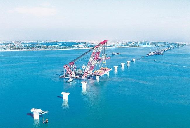 12月20日,厦金大桥厦门段首榀海上装配式大节段钢箱梁顺利完成吊装,标志着项目正式迈入上部核心结构施工阶段。此次吊装的首榀钢箱梁位于大嶝西航道桥东侧非通航孔桥90-91号墩,梁长142.5米、宽44米、高4.5米,总重量4586吨。厦金大桥厦门段建成后,将与厦门翔安国际机场、厦金航线构建对台海陆空立体交通新格局,对推进两岸融合发展示范区建设具有重要意义。