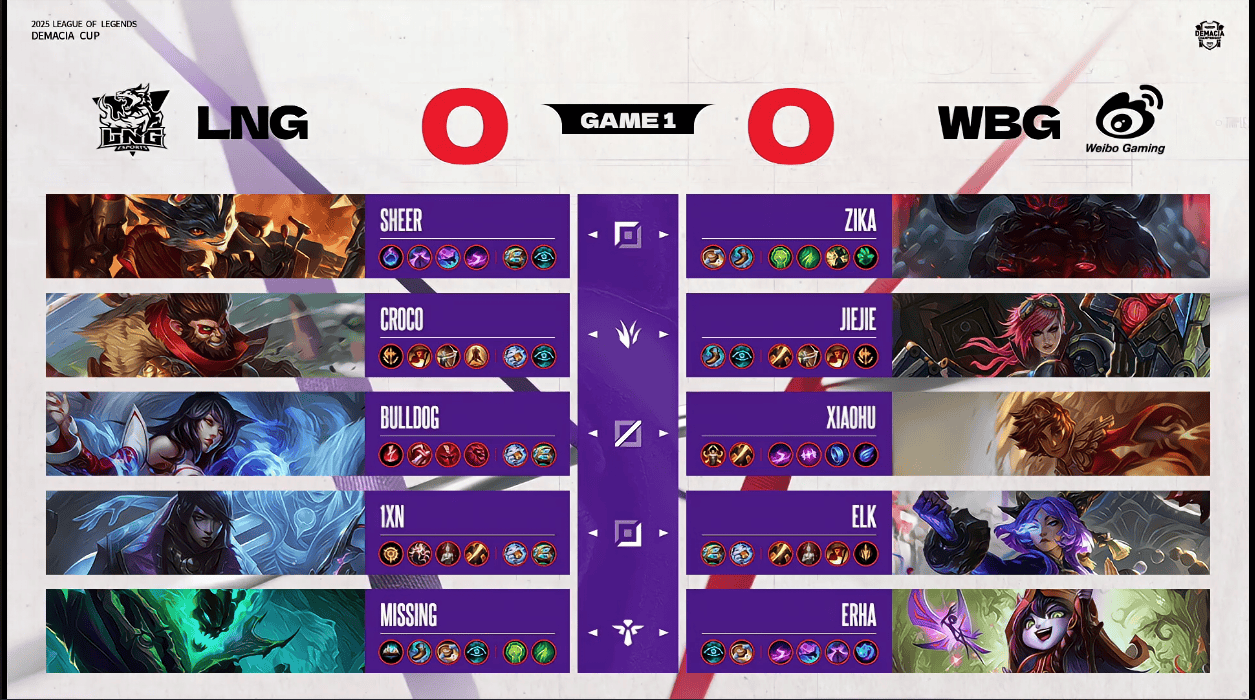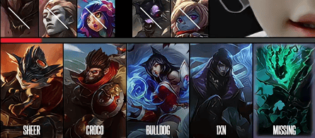LNG选用:Sheer兰博;Croco猴子;BuLLDoG阿狸;1xn厄斐琉斯;MISSING锤石