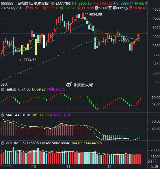碳酸锂大涨,股市里领涨的为何是六氟磷酸锂个股,不是锂矿股?大盘今日震荡上扬,涨到了前期高点后回落,报收十字星。日线显示,它已经出现双底+诺曼底底背离+上涨波段,目前涨到了颈线位,存在调整需求。接下来,大盘如果出现横而不跌的走势,那是小级别主升浪启动的信号。盘面上,今日锂电池产业链个股涨幅居前,六氟磷酸锂之天际股份、多氟多、深圳新星涨停。消息面上,碳酸锂期货继续大涨,今日上涨5.67%,站上了12万元/吨的关口。受益于储能等对锂电池需求拉动,12月以来锂电产业链景气度持续攀升,继六氟磷酸锂后,VC添加剂和FEC因供需缺口扩大,价格上涨。碳酸锂涨的真是太狠了,赣锋锂业董事长李良彬预测,碳酸锂2026年价格可能突破15万元/吨,极端情况下会突破20万元/吨。当时说这话的时候,碳酸锂才8万多元/吨,短短一个月,就涨了50%,涨到了12万元/吨。按照这个速度,1月份就可能突破15万元/吨了。不管是股市还是期货,价格走势就是一个疯子,不是涨过头就是跌过头,从来不会刚刚涨到位或跌到位就停止。现在碳酸锂期货这个疯子已经狂躁起来了,但锂矿股却还是迷迷糊糊的跟涨,还没有疯狂起来。昨晚三花智控已经拉开了年报预告的大幕,业绩预增的刺激即将来临。A股里很多板块业绩预增已经是明牌,比如PCB、人形机器人等,但业绩预增已经表现在股价上了,预期差已经消失了。锂电池、多晶硅个股、软件股(AI应用)业绩预增比较强烈,但股价却涨幅很小或者依然趴在地板上,这就存在很大的预期差,尤其是正在涨价的锂电池之VC、FEC等电解液的核心添加剂。六氟磷酸锂在10-11月为什么涨那么猛?碳酸锂猛涨,为何锂矿股涨幅不强烈?原因在于,碳酸锂在锂电池的成本里占比较大,而六氟磷酸锂的占比很小,储能电池厂商能够容忍六氟磷酸锂涨价,但没办法容忍碳酸锂大幅涨价。而比六氟磷酸锂占比更小的是电解液添加剂,今天这类股确实也表现最好,值得持续关注,具体分析详见同名工号“股市张望”。这个号即将停更,期待与大家在新地方见面。