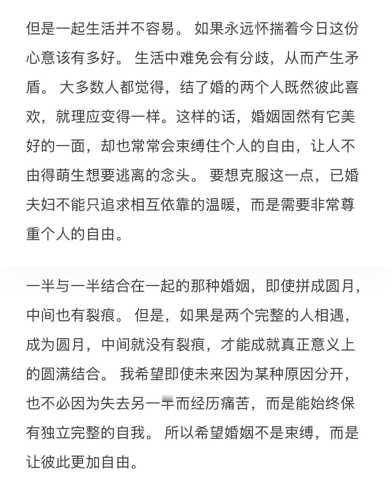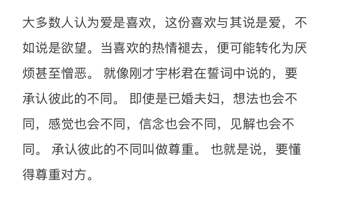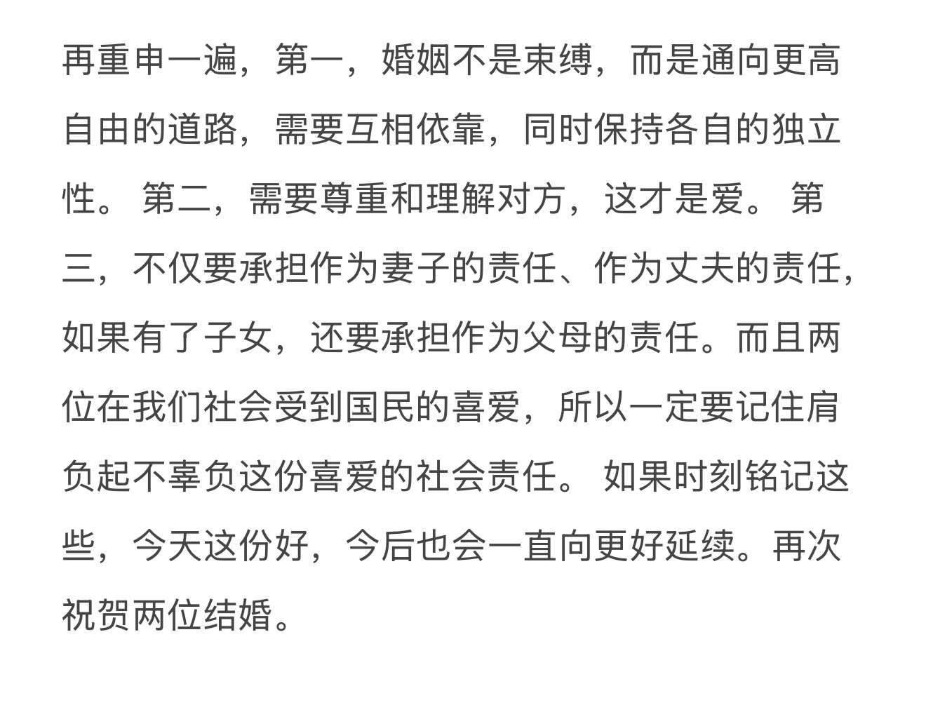 申敏儿金宇彬婚礼|佛教法师证婚词完整版图1 一直资助小朋友的敏儿,她曾头顶供养米为金宇彬祈祷健康图2 已婚夫妇不能只追求相互依靠的温暖,而是需要非常尊重个人的自由。图3 要承认彼此的不同图4 学会换位思考图5 不仅肩负起妻子丈夫的责任,还要肩负起与自身名望相匹配的社会责任,不辜负国民对两位的喜爱图6 如果两位时刻铭记以上这些,今天这份好,今后也会一直向更好延续(图7图8图9 都是敏儿画的) 金宇彬申敏儿婚礼证婚词