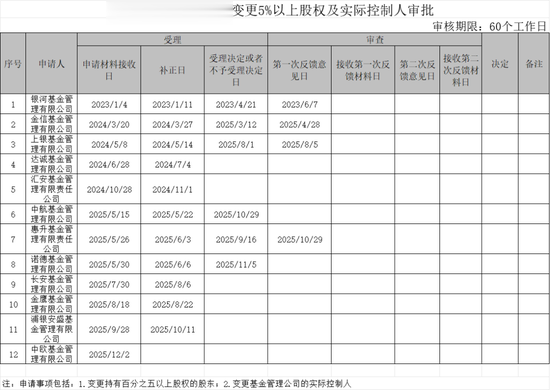 据证监会更新发布于12月5日的审批事项汇总,中欧基金管理有限公司(简称:中欧基金)提交“变更5%以上股权及实际控制人”的申请材料,在今年12月2日获得接收。