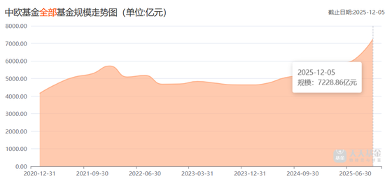 据天天基金网,中欧基金在今年上半年末规模触及6,112.01亿元的历史高点。而在12月5日更是一举突破七千亿大关,达7,228.86亿元。由此,在215家公募机构中排名第19位,超过中银基金,略逊于华安基金和兴全基金。
