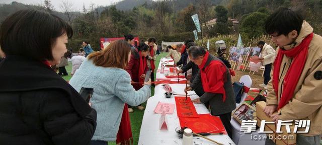 记者在现场看到,舞台旁设有“新春翰墨·福韵湘江”送春联区域。来自长沙老干部文学艺术联合会的谢胜文等6位书法家铺纸挥毫,将一副副寓意吉祥的春联送到村民手中,为即将到来的新春增添浓浓年味。此外,活动中还举行了文艺志愿者证书颁发仪式,表彰长期扎根基层的文化服务工作者。