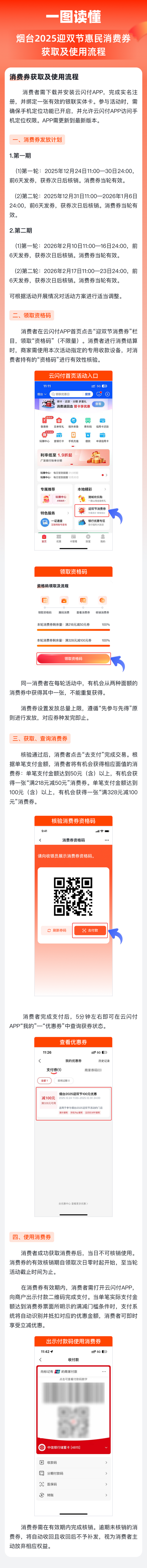 本次活动与中国银联股份有限公司山东分公司(以下简称“山东银联”)、银联商务支付股份有限公司山东分公司(以下简称“山东银商”)合作,使用云闪付APP“鲁换新”小程序发放2025年迎双节惠民消费券(以下简称:消费券)。