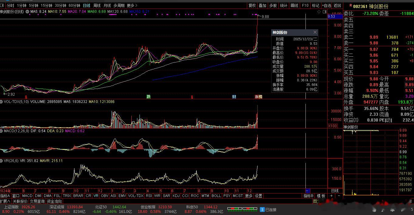 【财富晚茶】飞龙踏浪深水股海:12.23午盘主力资金净流入前20股导语:作者系《网易号》优质财经领域创作者。曾经原创作者和知名网易号旅游领域创作者。大跨度行业等的写作,颇受网友喜爱。作品发表于2025.12.22.12:18 优雅端庄晚风。【内容概述】今日股市午盘收评:主题是:【财富晚茶】飞龙踏浪深水股海:12.23午盘主力资金净流入前20股。主旋律:12.23主力资金:净流入前20股票:政策提振时代背景。一、视野最新:主力资金:前20强股票主旋律:最强股票:双飞资金前20股票1、午盘收盘:涨停龙头2025年12月23日午盘:收盘的涨停板龙头股之:两驾马车:神剑股份和中国一重:帮你梳理一下:飞龙之一:神剑股份第一、商业航天:新材+高端商业航天概念股:业绩增长:扣非净利润同比增长54.29%,主营业务盈利能力显著增强。业务布局:以“化工新材料+高端装备制造”双主业为核心,高端装备制造业务服务于航空航天、轨道交通等领域,契合当前航天军工的热点题材。第二、市场关注入选龙榜市场关注:12月19日入选龙虎榜,成交额19.86亿,游资和机构净买,市场资金关注度高。飞龙之二:中国一重第一、新源龙头取消监事新能源布局龙头:治理优化:积极推进治理结构现代化改革,取消监事会并强化董事会职能,提升决策效率。第二、投资风电契合趋势新能源布局:设立新能源公司并投资风电项目,推动业务向新能源领域转型,契合行业发展趋势。第三、游资外资潮涌净买资金流入:12月19日入选龙虎榜,成交额7.99亿,游资和外资净买,资金流入为股价涨停提供动力。2、两只股票:功底扎实视野饱览:两股功勋:令人满意。第一、神剑股份航天军工更偏向航天军工和业绩增长。第二、中国一重稳操胜券中国一重:侧重新能源和治理优化。二、视野背景:特点逻辑:前20强股票主旋律:净流入股:飞龙特点核心逻辑1、复盘飞龙:异军突起第一、资金净流入主要标配12月23日:资金净流入的股票:主要标配:除了神剑股份,今天商业航天板块:潮涌市场:分别是亚太股份、立昂微、北斗星通、国机精工股票涨停。第二、涨停能量行业利好它们和神剑股份一样:都受益于:行业利好消息。例如我国成功发射通信技术试验卫星;国内可回收火箭技术有望突破。第三、前赴后继最有潜力中光防雷、九鼎新材等也表现不错,涨幅靠前。2、复点飞龙:风口净利第一、风口之一:神剑股份业绩增长:扣非净利润同比增长54.29%,主营业务盈利能力显著增强。业务布局:以“化工新材料+高端装备制造”双主业为核心,高端装备制造业务服务于航空航天、轨道交通等领域,契合当前航天军工的热点题材。市场关注:12月19日入选龙虎榜,成交额19.86亿,游资和机构净买,市场资金关注度高。ESG评级:BBB(2025-06-30)。第二、风口之二:中国一重治理优化:积极推进治理结构现代化改革,取消监事会并强化董事会职能,提升决策效率。新能源布局:设立新能源公司并投资风电项目,推动业务向新能源领域转型,契合行业发展趋势。资金流入:12月19日入选龙虎榜,成交额7.99亿,游资和外资净买,资金流入为股价涨停提供动力。ESG评级:未明确提及,但治理优化和新能源布局是亮点。第三、风口之N:其他涨停亚太股份(002284):ESG评级为C(2025-06-30)。北斗星通(002151):ESG评级为B(2025-06-30)。国机精工(002046):未明确提及ESG评级,但市净率处于近十年来的38.42%分位值,距离近十年来的中位估值还有13.08%的上涨空间。3、把握飞龙:综合建议第一、适合稳健型投资者神剑股份:业绩增长明确,业务布局契合热点,市场关注度高,ESG评级较好第二、适合转型型投资者中国一重:治理优化和新能源布局是亮点,资金流入明显,适合关注转型机会的投资者。第三、业务行业趋势判断其他股票:亚太股份和北斗星通的ESG评级一般。国机精工估值有上涨空间,但需结合具体业务和行业趋势判断。4、踩踩猜猜神剑一重神剑股份和中国一重哪个更值得关注?两只股票:神剑股份和中国一重各有侧重,梳理一下方便投资偏好选择。选择之一 神剑股份第一、商业航天低空经济商业航天+低空经济双驱动。商业航天:公司是商业航天概念股,近期因卫星发射等利好消息涨停,市场关注度高。低空经济:掌握碳纤维等飞行汽车核心原材料技术,未来可能受益于低空经济市场扩张。第二、扣非净利盈利增强业绩表现:扣非净利润同比增长54.29%,主营业务盈利能力增强。ESG评级:BBB(2025-06-30)。选择之二 中国一重第一、转型潜力核电新能核电+新能源转型潜力大。新能源布局:设立新能源公司并投资风电项目,推动业务向新能源领域转型。第二、受益“双碳”能源安全政策支持:受益于“双碳”目标和能源安全战略,核电设备需求稳定。ESG评级:BB(2025-10-31)。选择之三 难分难解综合对比神剑股份:短期题材驱动强,商业航天和低空经济概念活跃,适合关注热点题材的投资者。中国一重:长期逻辑更扎实,核电和新能源布局符合政策方向,适合稳健型投资者。